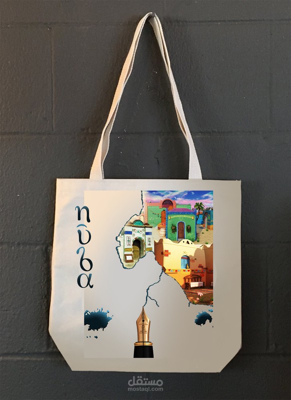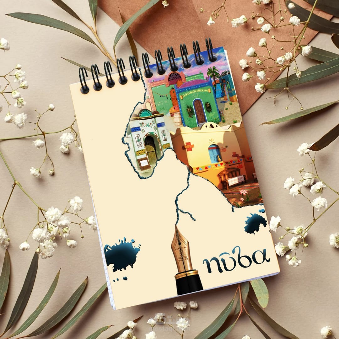 ( الخلفية ) ألوان ترابية فاتحة تدل على الصحراء والجزر النوبية ، والأزرق يدل على نهر النيل ، والبيوت النوبية بألوانها وزخارفها الذاهية
