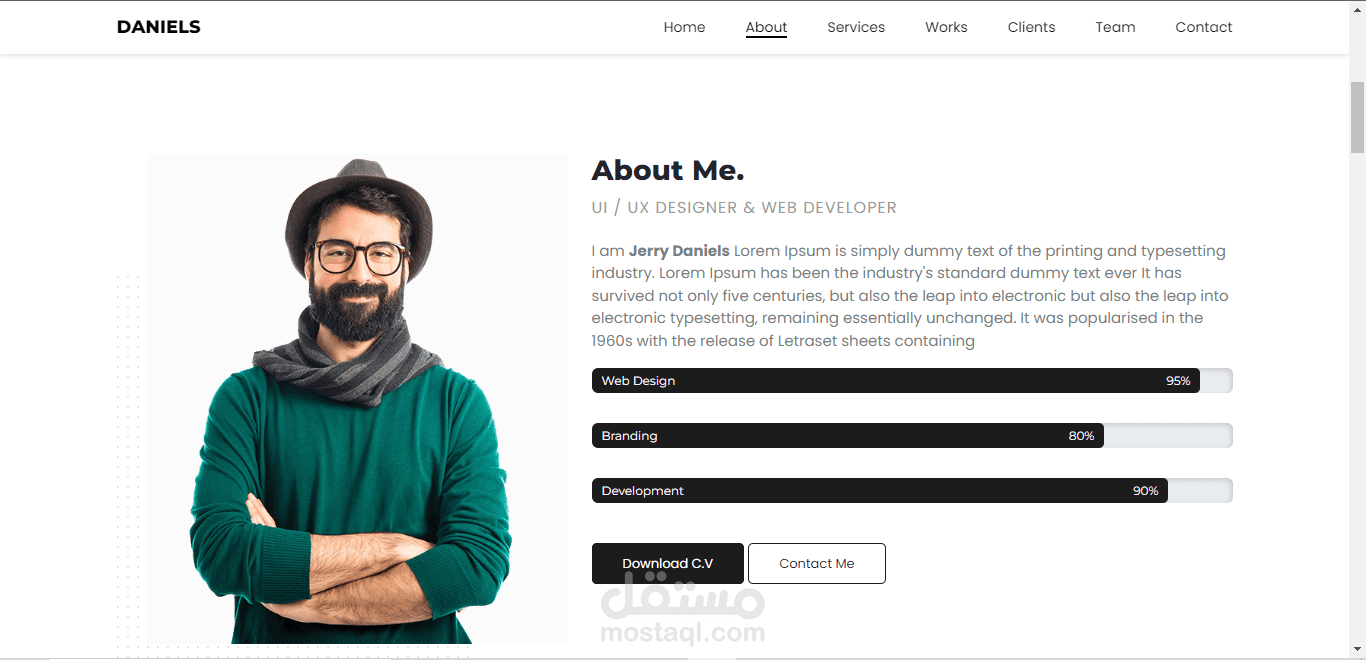 واجهة Daniels هي صفحة شخصية تفاعلية بالكامل (100%)، صُمّمت لعرض مهارات وأعمال مطوّر الويب بطريقة عصرية وبديهية تجذب الزوار وتترك انطباعًا احترافيًا منذ الوهلة الأولى.