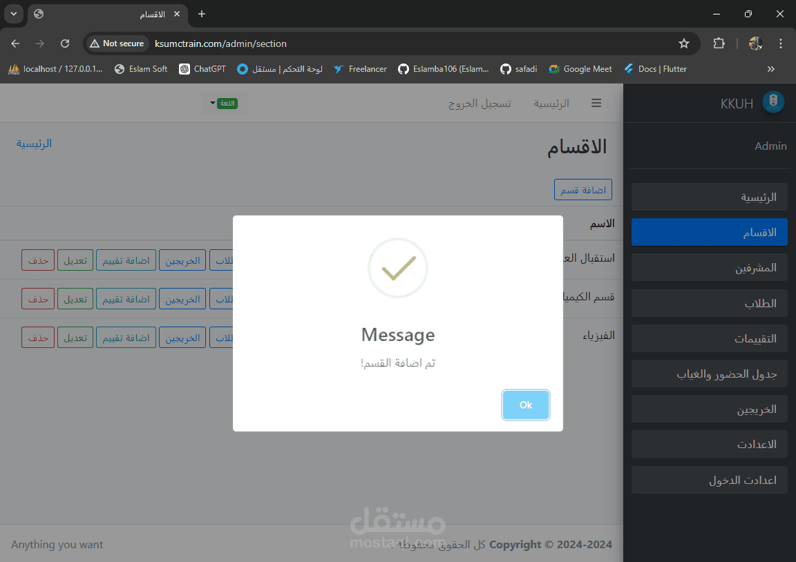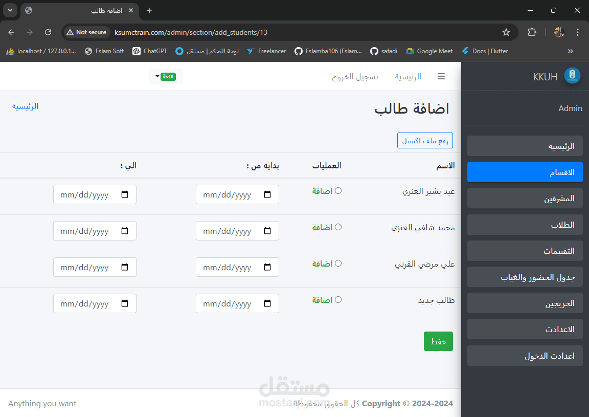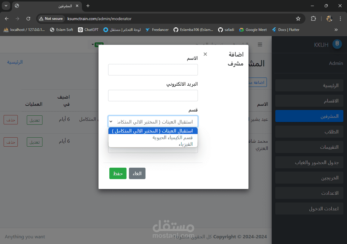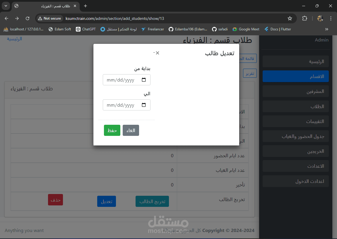 الموقع عبارة عن لوحة تحكم ادمن ولوحة تحكم مشرف ولوحة تحكم للطالب وبصلاحيات متفاوتة