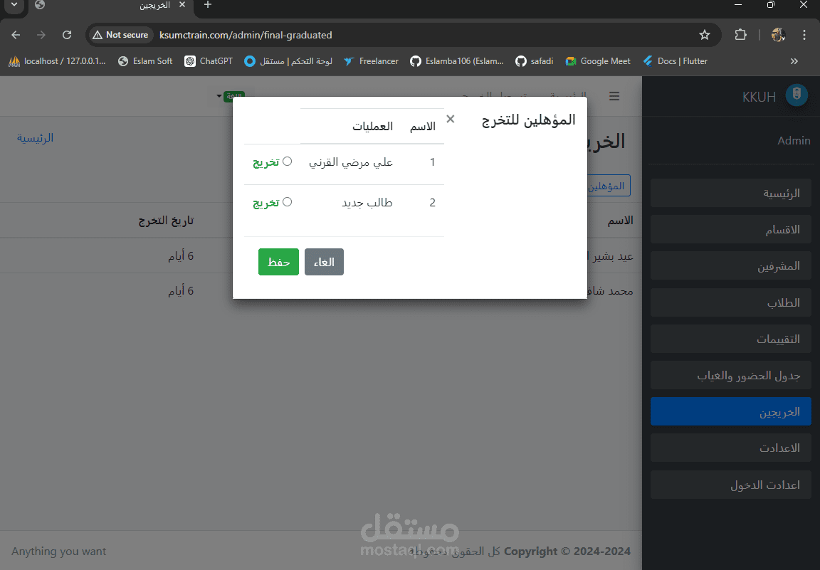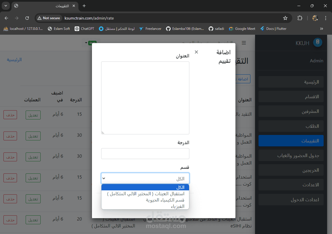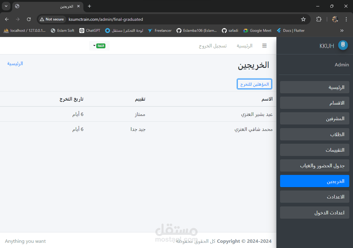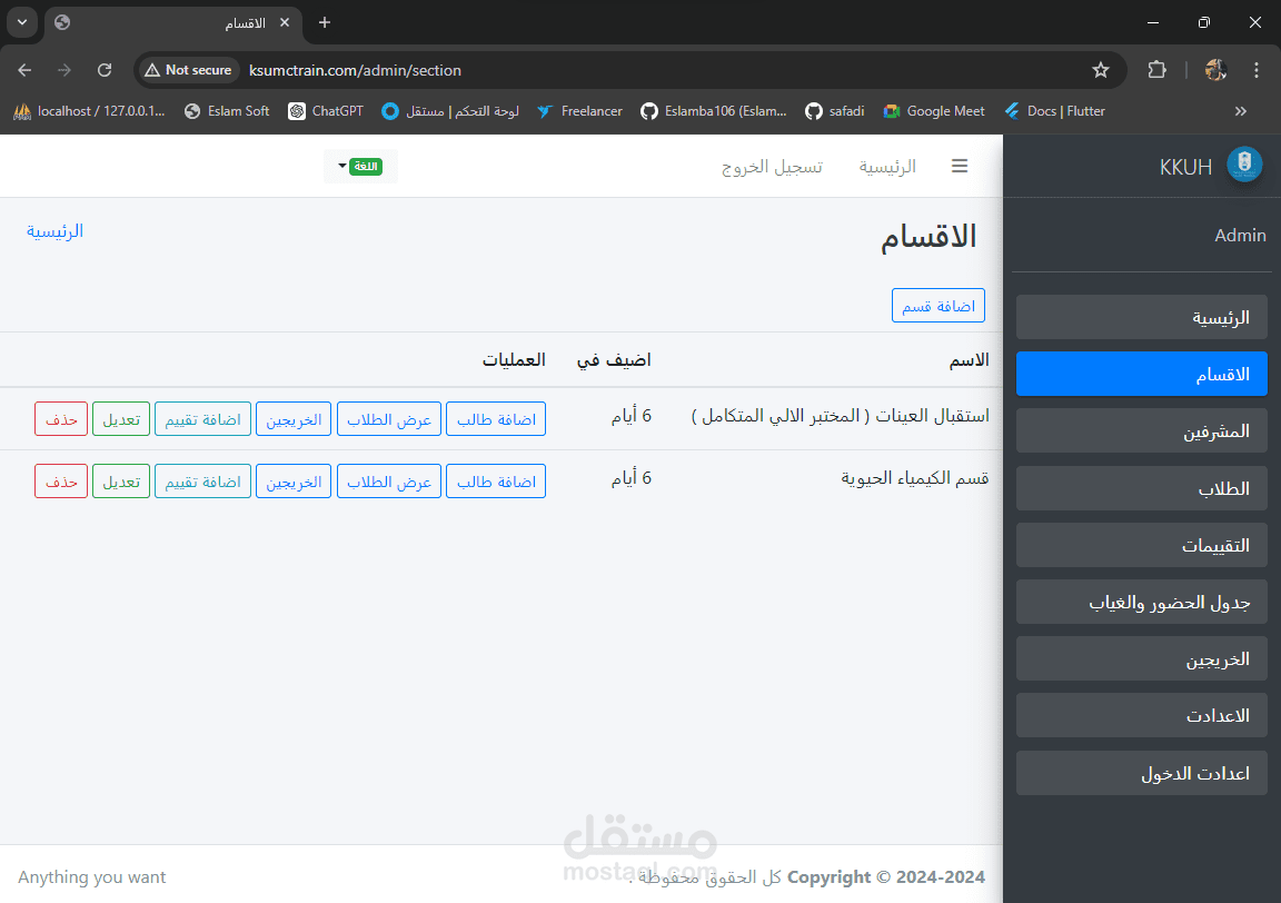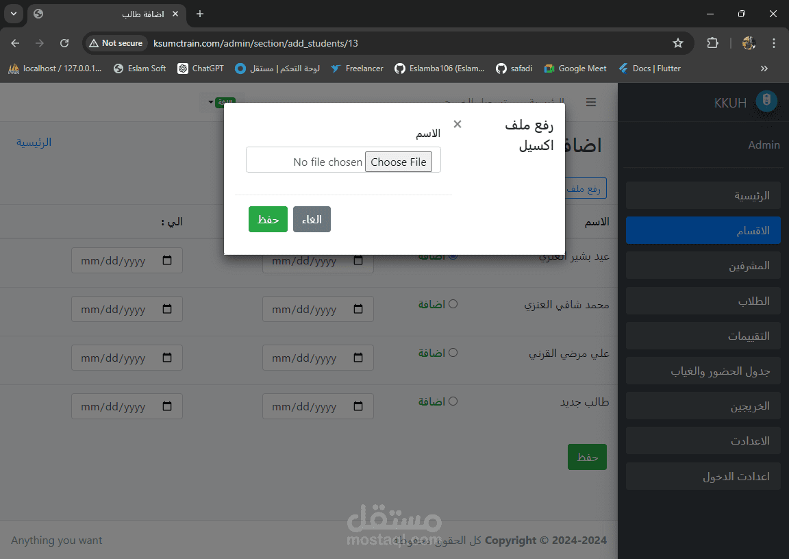 الموقع عبارة عن لوحة تحكم ادمن ولوحة تحكم مشرف ولوحة تحكم للطالب وبصلاحيات متفاوتة