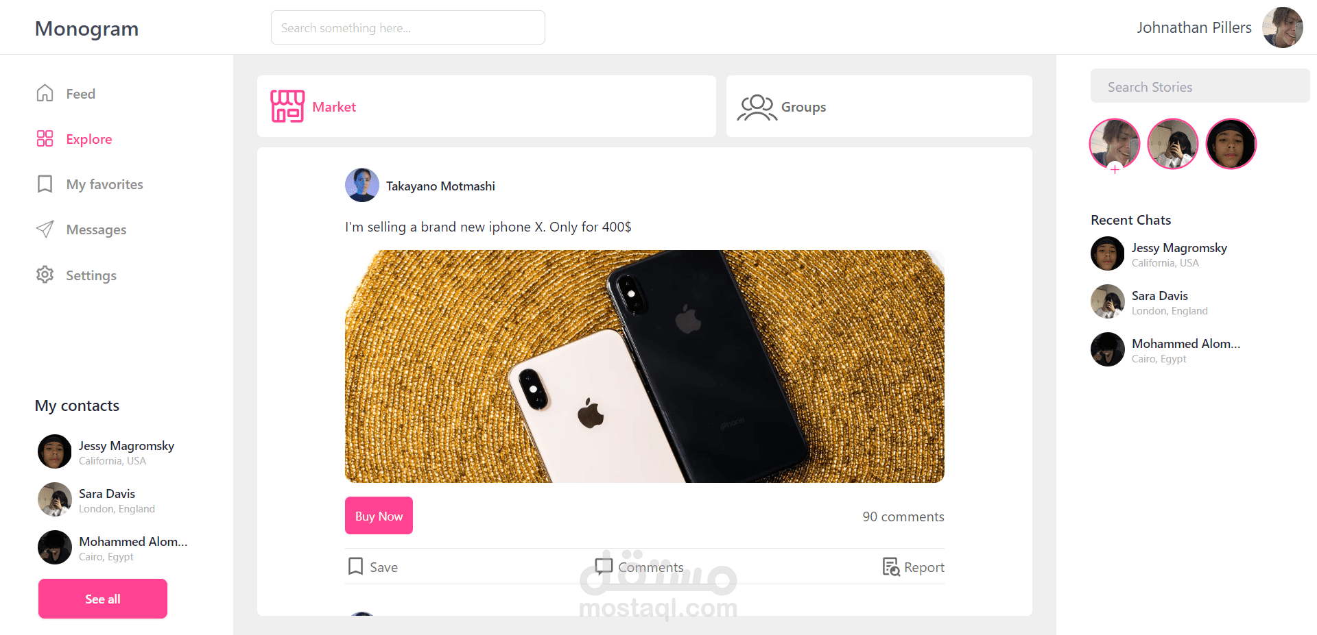 Monogram هو تطبيق مشابه ل Facebook و Instagram حيث يمكن للمستخدم نشر posts و stories بالاضافة الى الانضمام للمجموعات و مراسلة الاصدقاء.