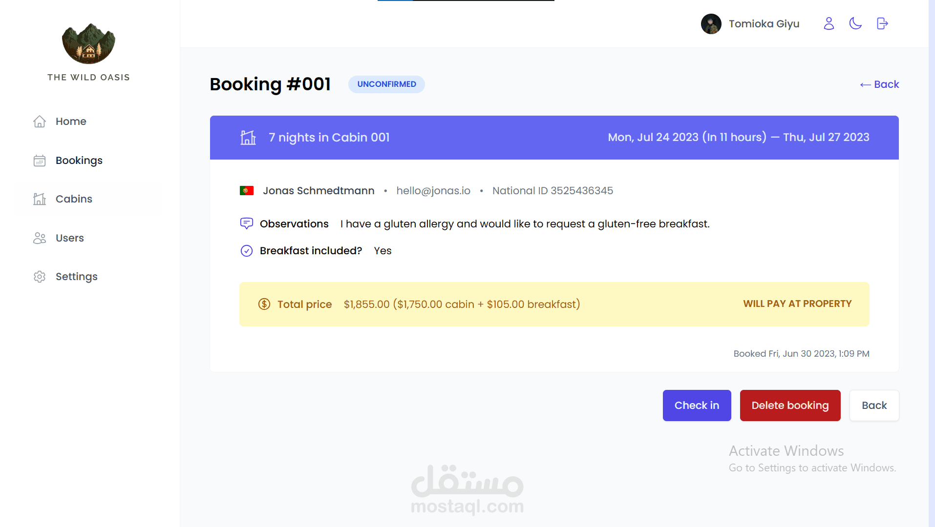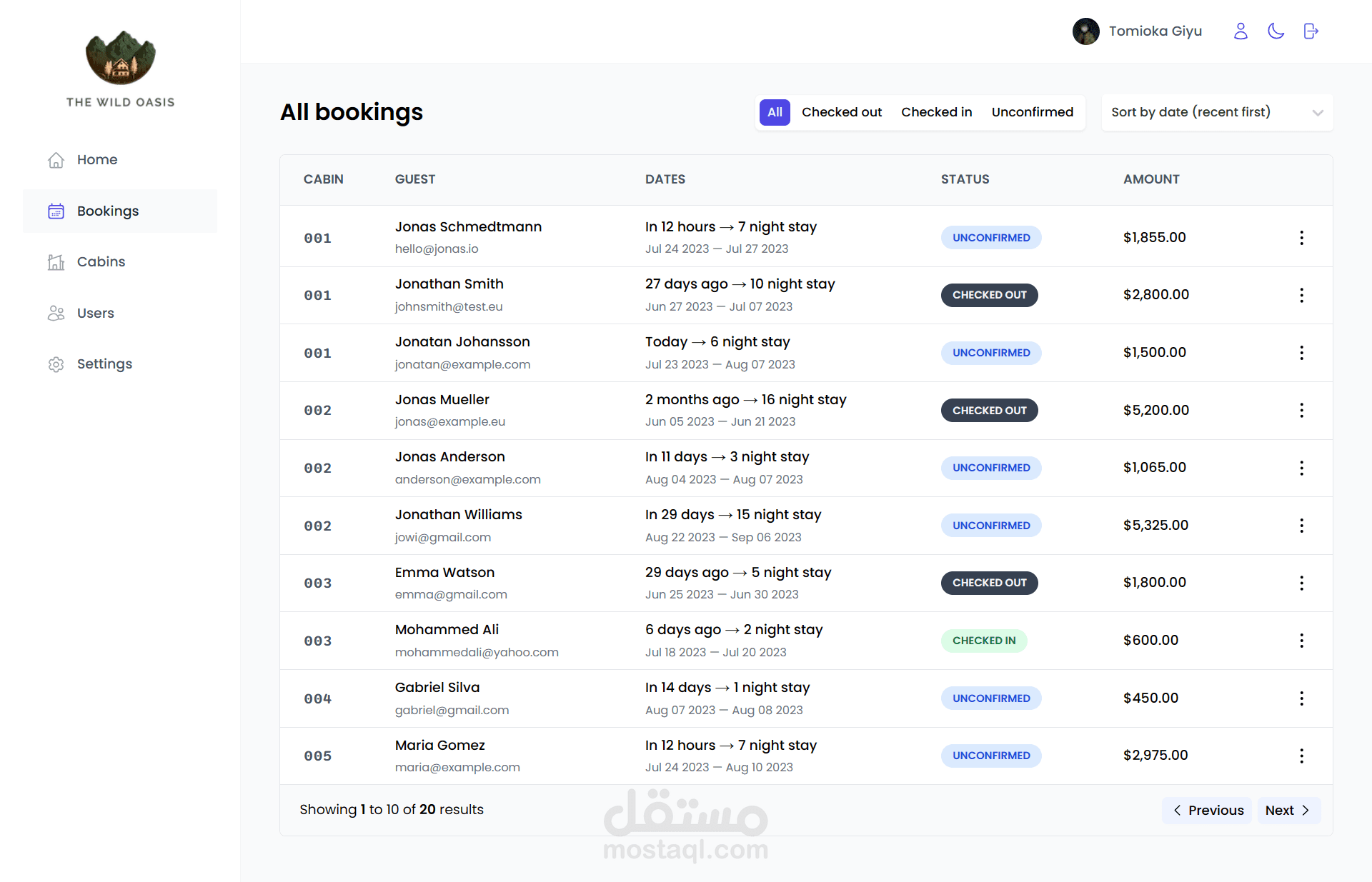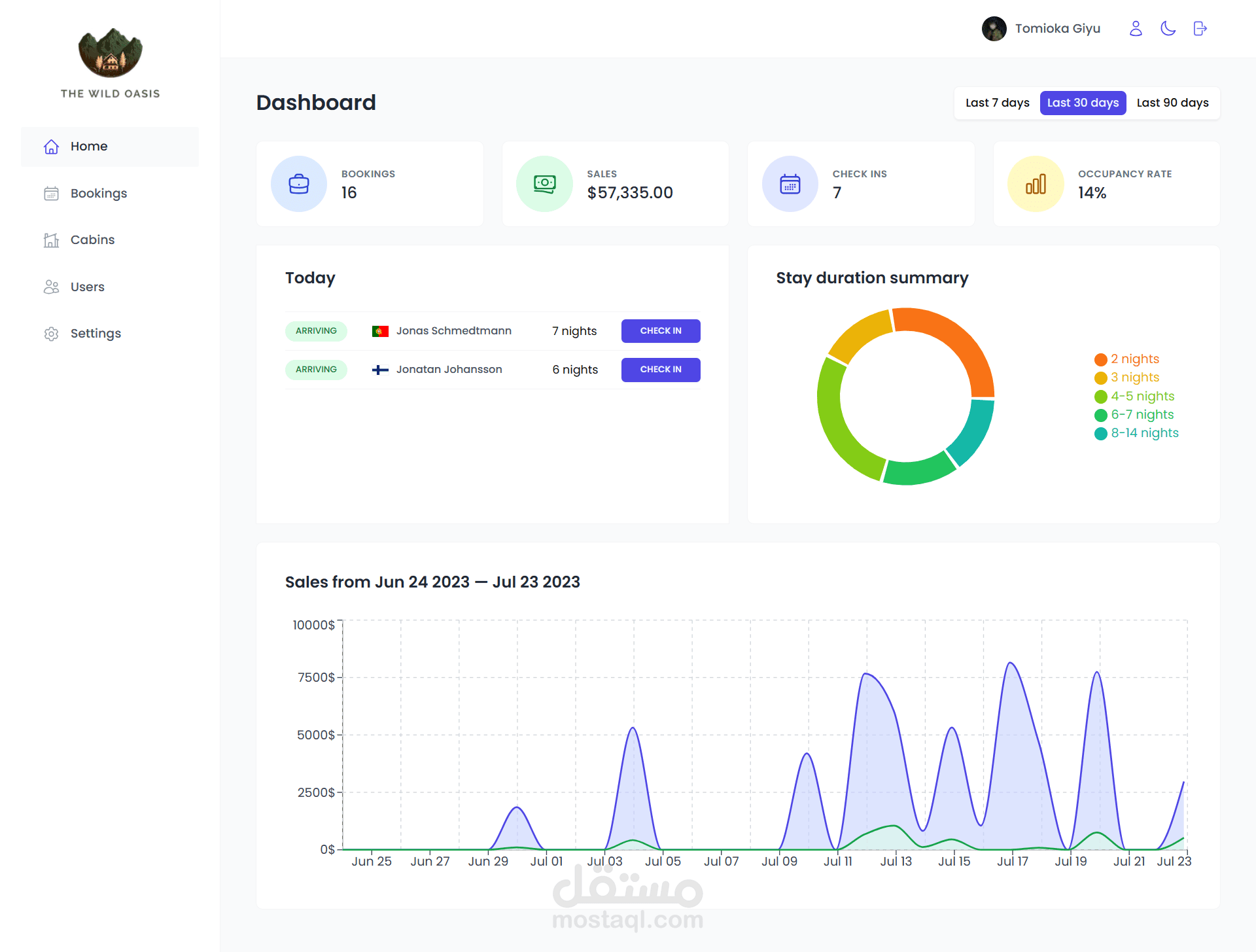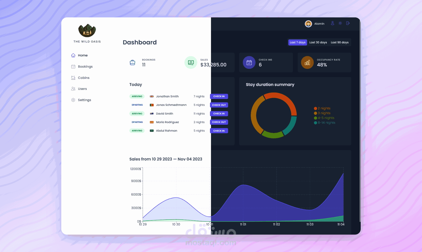 نظام إدارة الفنادق - تطبيق ويب كامل الميزات مبني باستخدام React يسمح لموظفي الفندق بإدارة الكبائن، الحجوزات، والنزلاء.