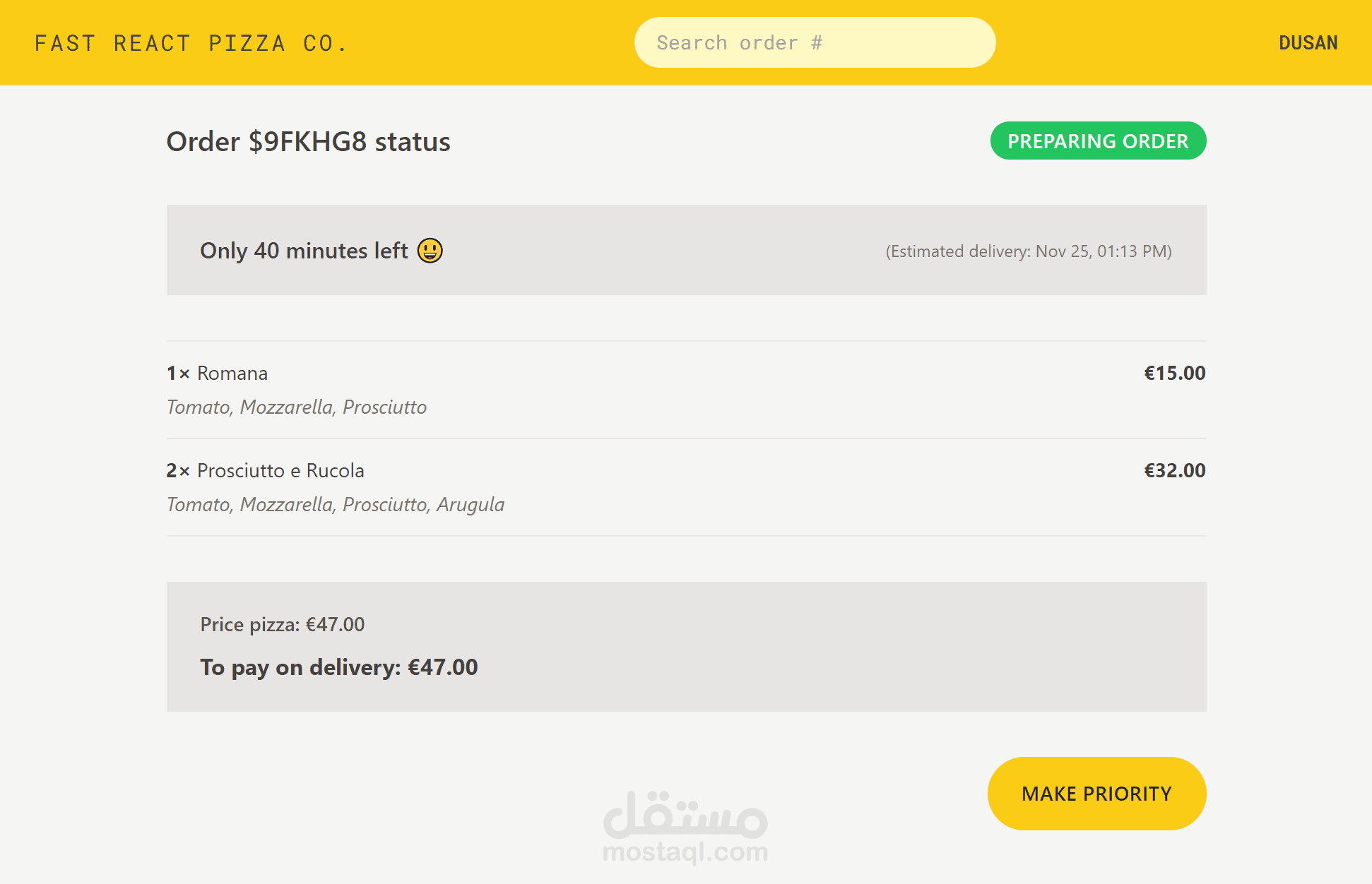 Fast React Pizza هو تطبيق ويب حديث مبني باستخدام React وRedux، يوفر تجربة طلب بيتزا مبسطة. يدمج التطبيق تتبع الطلبات في الوقت الفعلي، مصادقة المستخدم، وجلب العناوين بناءً على الموقع الجغرافي، مما يضمن خدمة سلسة وفعالة لمحبي البيتزا.