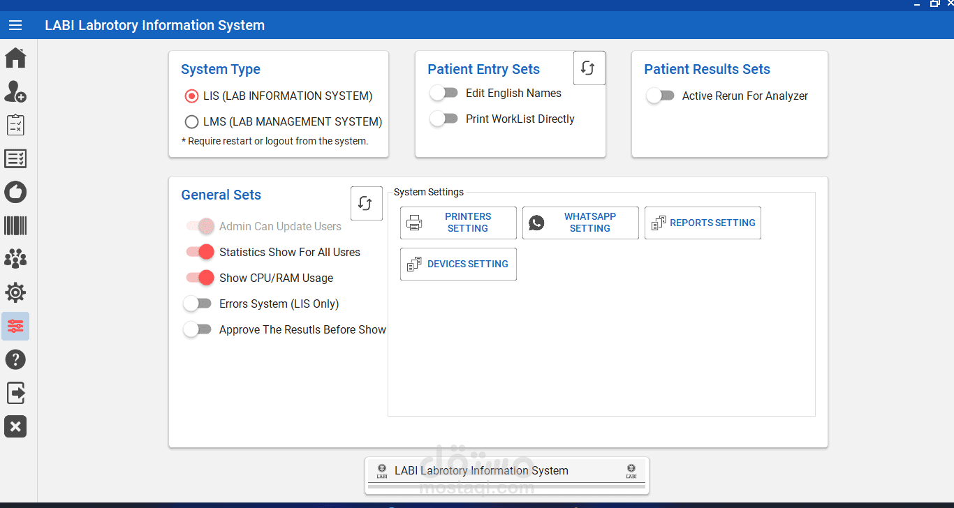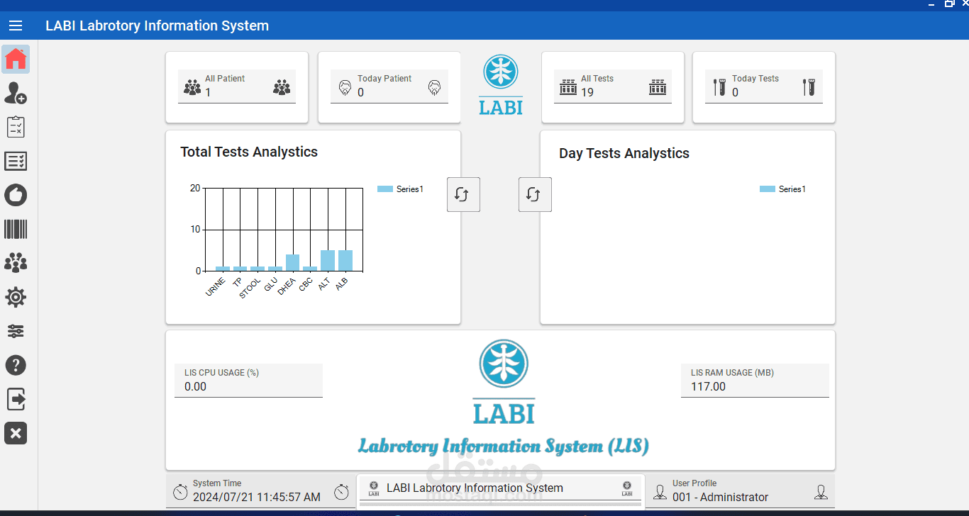 نظام LABI هو نظام إدارة مختبرات (LIS) متقدم تم تطويره بلغة فيجوال بيسك لتلبية احتياجات المختبرات الطبية بكفاءة وفعالية. يتضمن النظام العديد من المميزات التي تساهم في تحسين سير العمل وزيادة دقة العمليات المختبرية. من بين هذه المميزات: