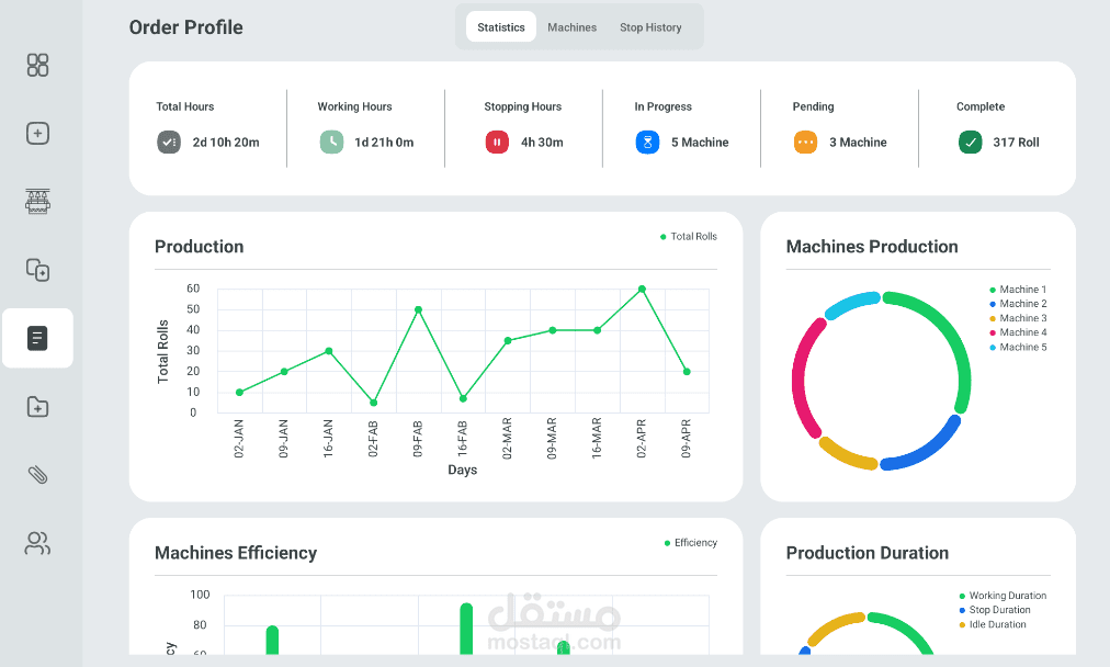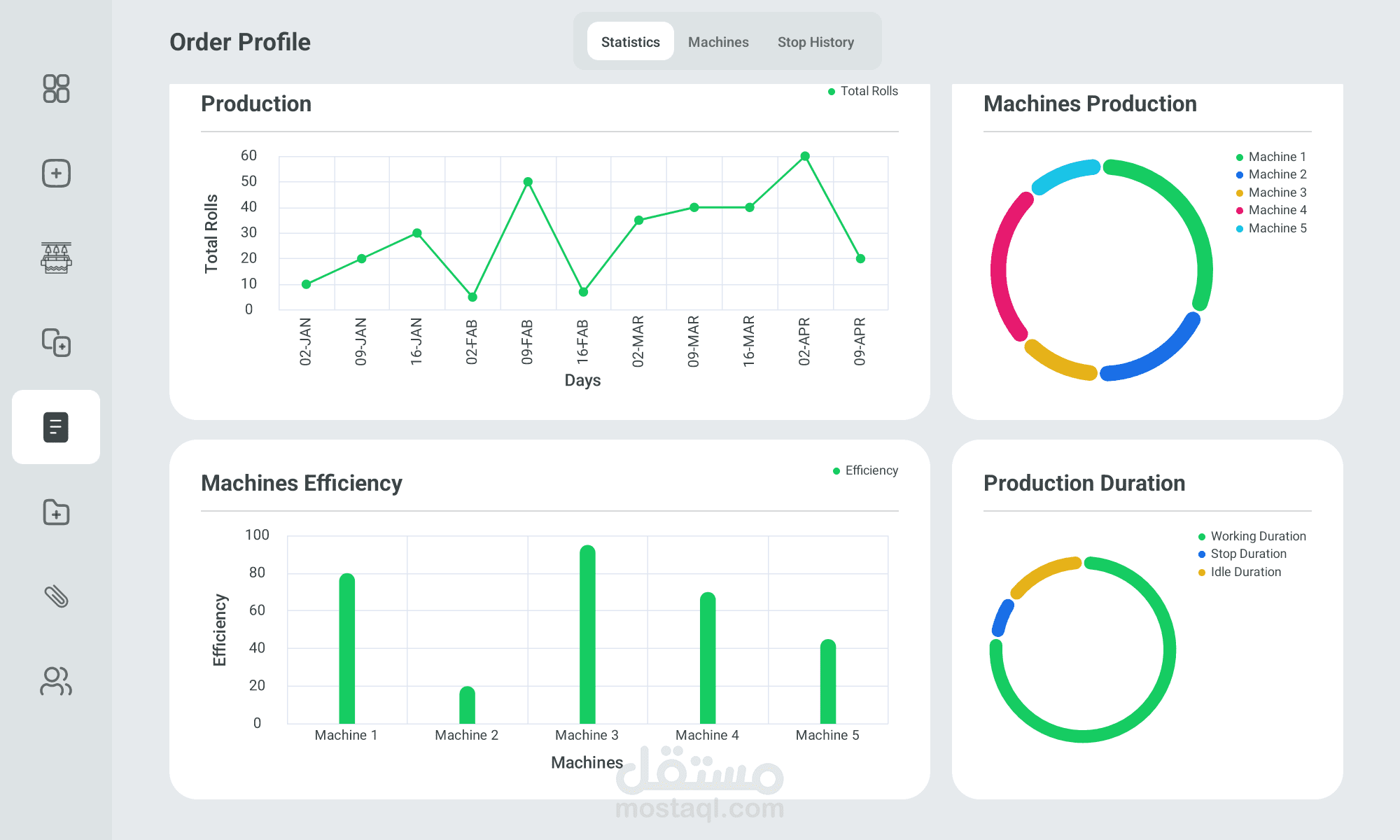 Dynamic Dashboards: Developed live dashboards for managers to monitor machine productivity and order progress in real time, with views tailored for overall productivity, individual machines, and specific orders.