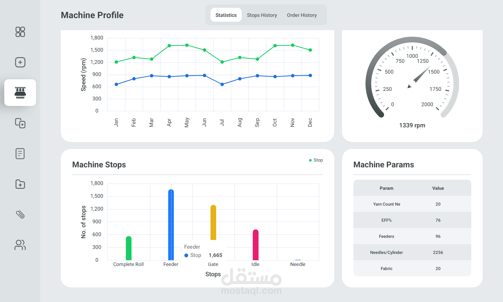 Enhanced Production Tracking: Facilitated detailed monitoring of machine performance and production efficiency, providing actionable insights for improving operational efficiency.Innovative IoT Solution: Contributed to developing an IoT monitoring system for tracking knitting machine performance and production in the textile industry. Real-Time Monitoring: Implemented sensor-based data collection, capturing machine status, production metrics, and stoppage durations every minute and storing it in a NoSQL database. Dynamic Dashboards: Developed live dashboards for managers to monitor machine productivity and order progress in real time, with views tailored for overall productivity, individual machines, and specific orders. Proactive Maintenance: Enabled QA engineers to track machine stoppages and durations, triggering alerts for timely maintenance and ensuring optimal machine health. Enhanced Production Tracking: Facilitated detailed monitoring of machine performance and production efficiency, providing actionable insights for improving operational efficiency.
