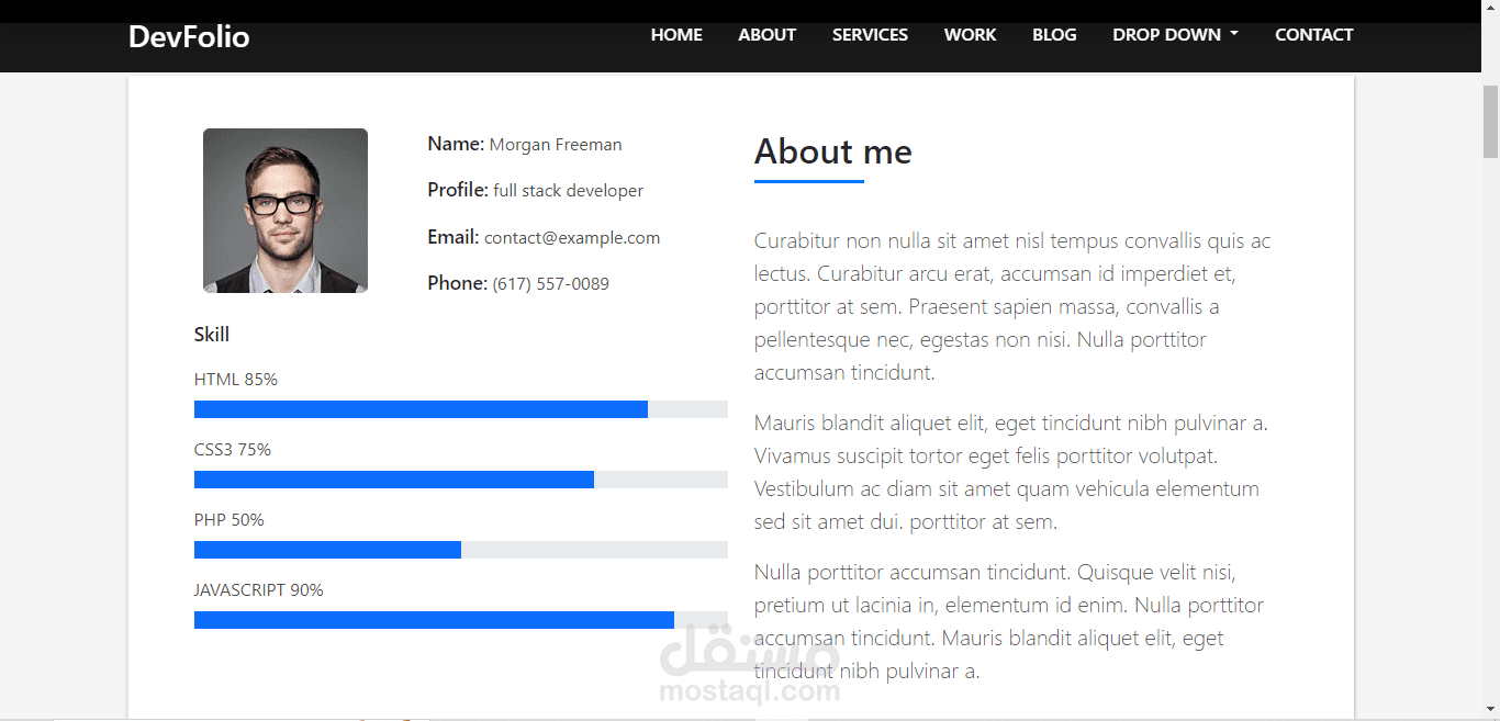 واجهة DevFolio هي صفحة شخصية تفاعلية بالكامل (100%) صُمّمت خصيصًا لعرض أعمال ومهارات مطوّر الويب بطريقة عصرية وبديهية تجذب الزائر منذ اللحظة الأولى.