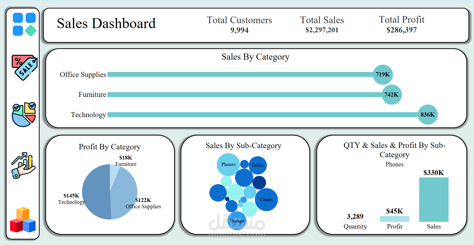 This dashboard offers a detailed analysis of sales and profit across different categories and sub-categories. It helps identify the best and worst performing segments, enabling targeted decision-making.