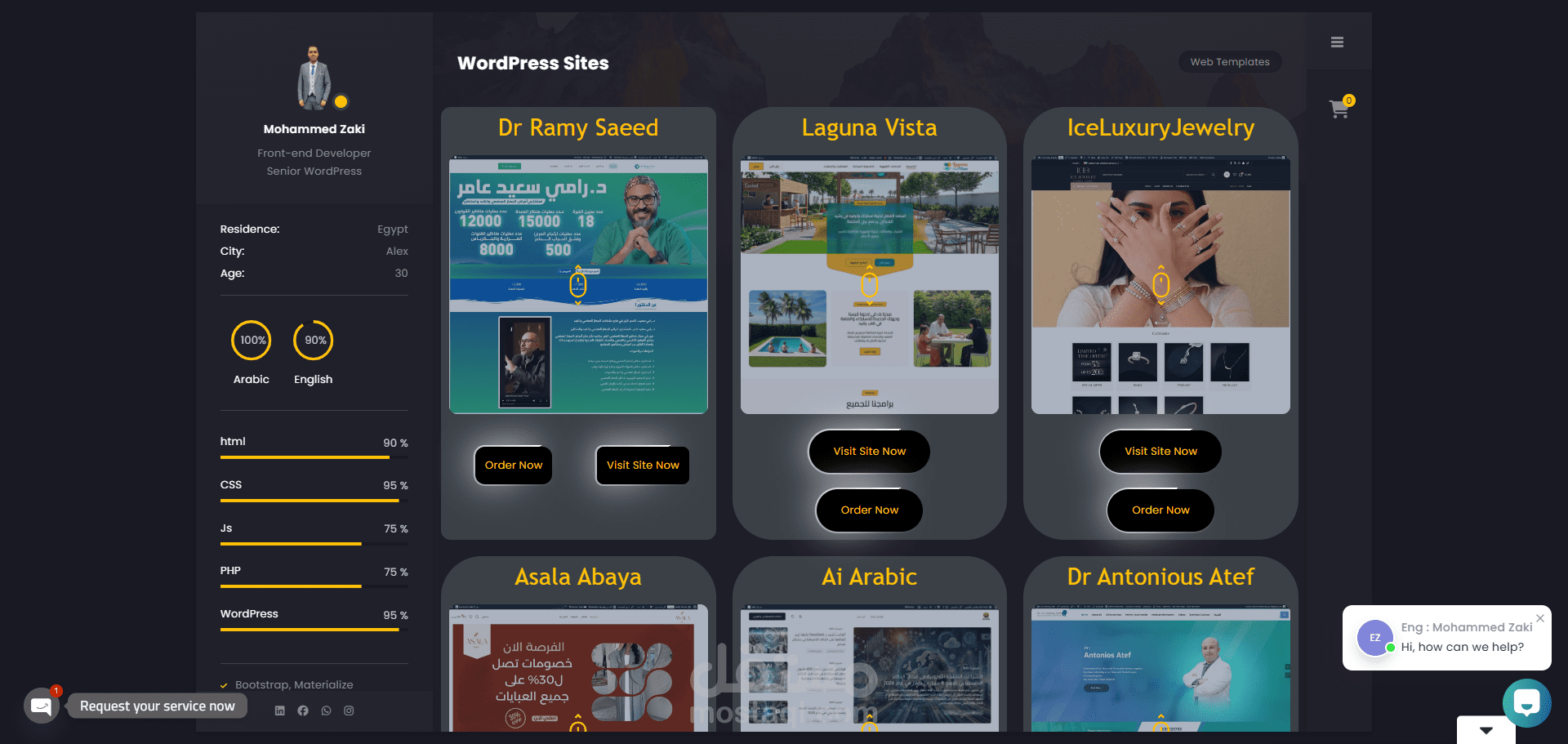 تم انشاء الموقع التعريفى الشخصى لى انا وبه جميع الامكانيات المتعارفة للمبرمج وبه خصائص متعددة لعرض اعمالى بطريقة خاصة .