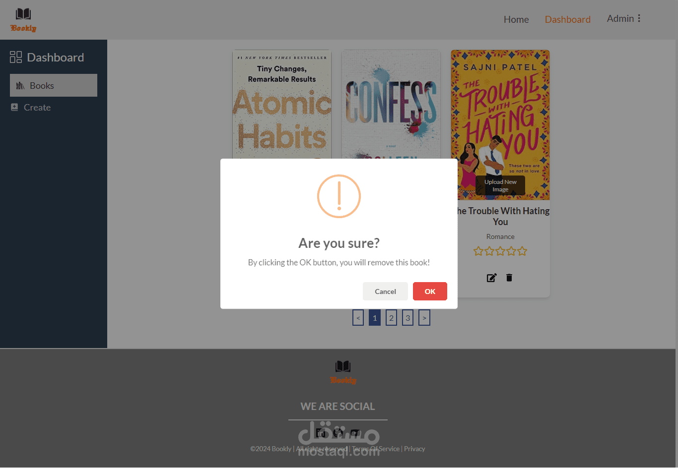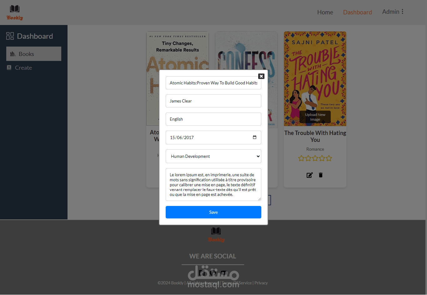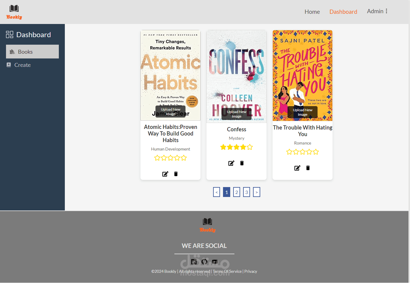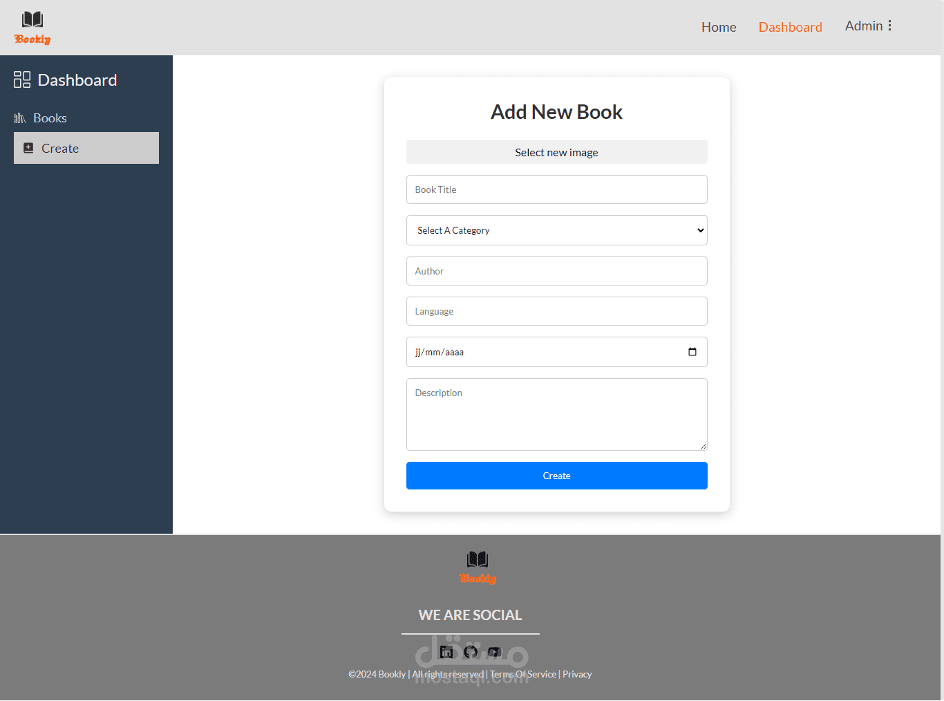 يمتلك المسؤول لوحة تحكم تتيح له إضافة أو تعديل أو حذف كتاب.