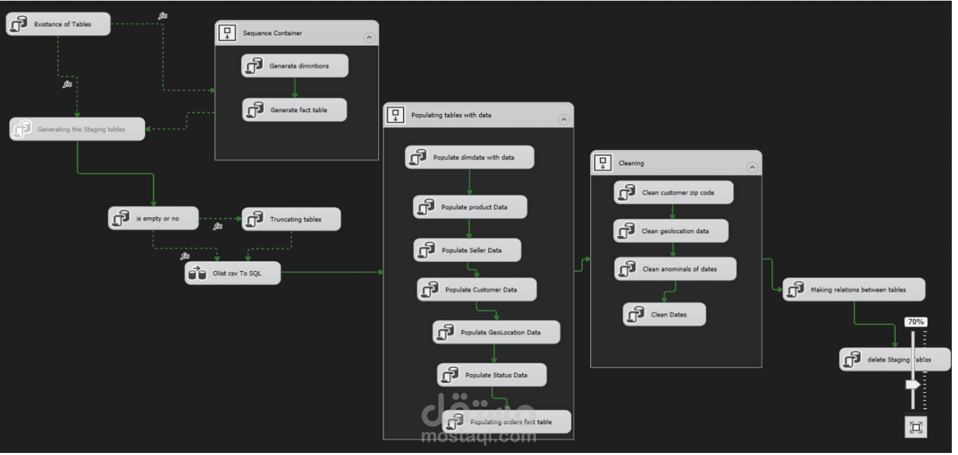 يتم اولا : استخراج وسحب البيانات من ملفات excel من خلال SSIS ما يسمي بعملية ETL ثم عمليه تحويل البيانات الي الصوره المناسبه عمليه ال Data Transformations and data Cleaning ثم عمل DWH باستخدام Power Query