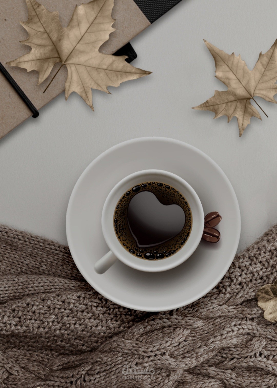 تصميم احترافي ليبرز اهميه القهوه المفضله فى فصل الخريف وشكل احترافي مع الوان متناسقه وجذابه