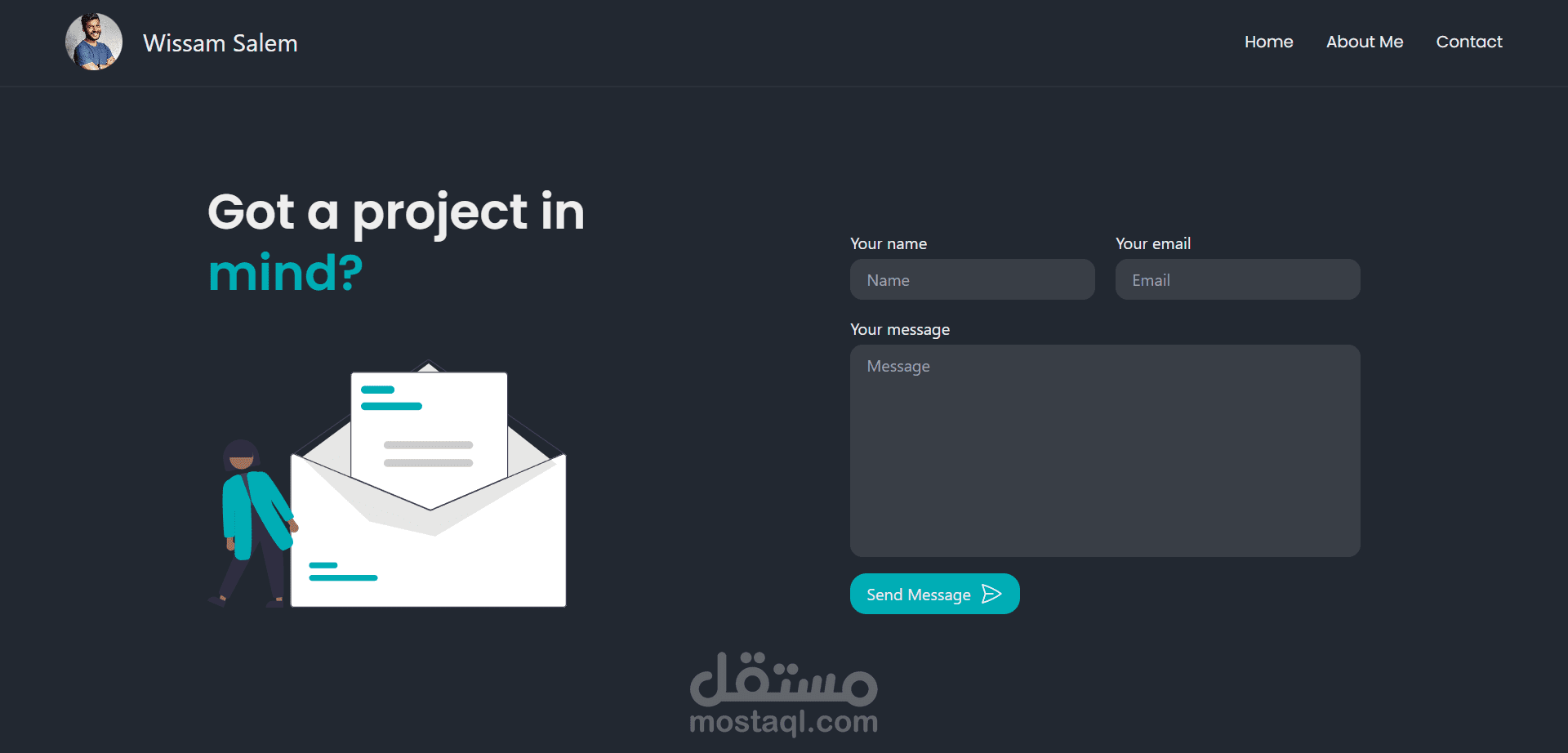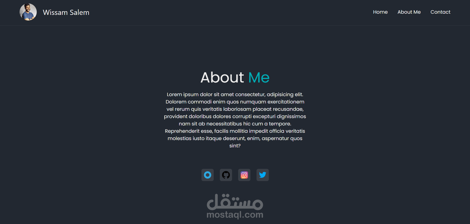 تم تصميم الصفحة ب React Js framework بالاضافة الى Tailwind Css. الموقع هو SPA (Single Page Application) مقسم الى 3 اقسام :
