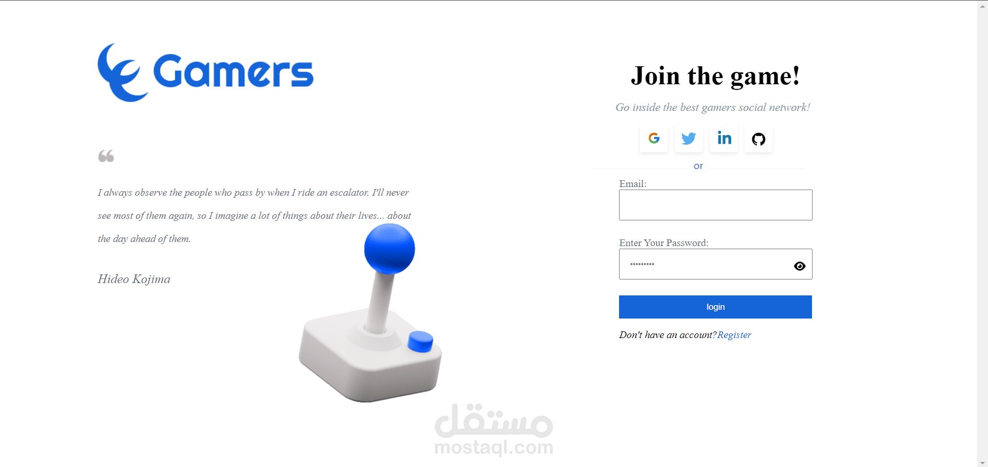 الصفحات: تسجيل الدخول، التسجيل، الملف الشخصي، الصفحة الرئيسية ، (admin page).