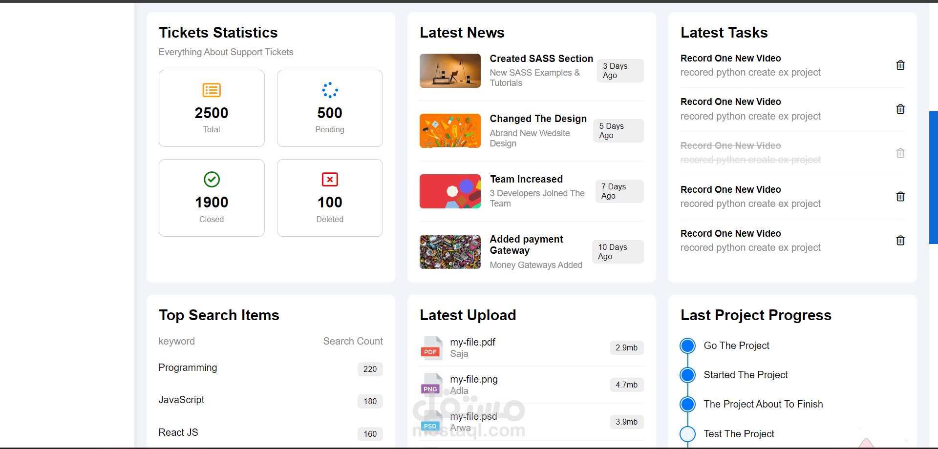 يُعرض هذا المشروع لوحة تحكم (Dashboard) مخصصة تم تصميمها باستخدام HTML وCSS .وتوفر هذه اللوحة توفر تجربة مستخدم متقدمة لتسهيل الوصول إلى المعلومات الهامة واتخاذ القرارات المبنية على البيانات.