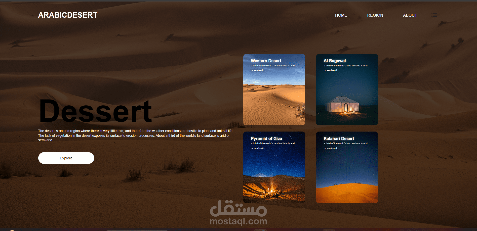 استكشف روعة الصحراء العربية مع صفحتنا المخصصة "استكشاف الصحراء العربية". صُممت هذه الصفحة لتقدم تجربة تفاعلية ومرئية تأخذك في جولة شاملة عبر المناظر الطبيعية للمناطق الصحراوية.