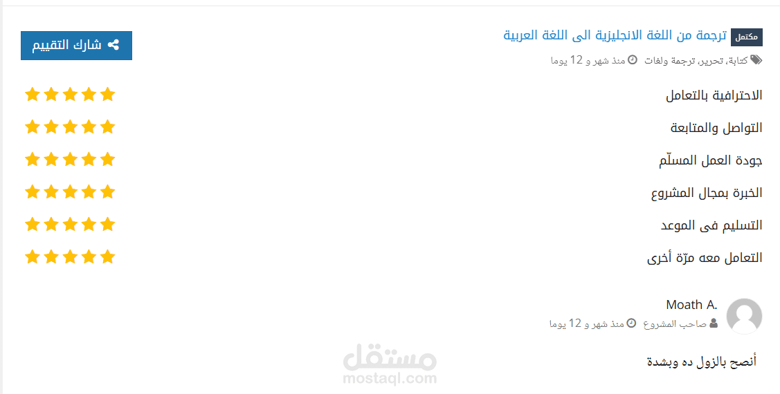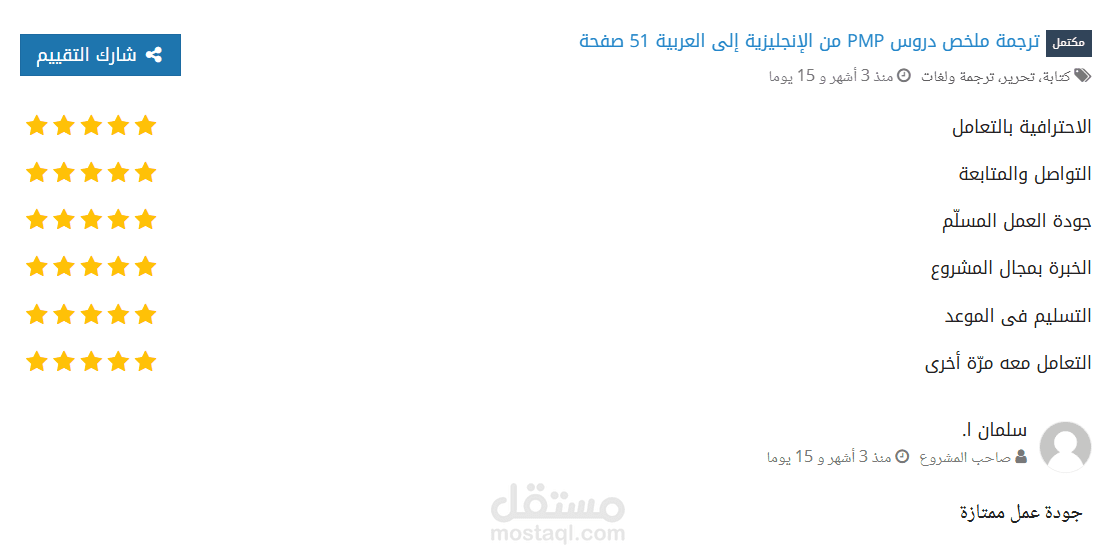 أقدم خدمات الترجمة الاحترافية للمواد الجامعية والمستندات بمختلف التخصصات. تشمل خدمتي ترجمة نصوص أكاديمية، أوراق بحثية، مشاريع تخرج، ومستندات علمية بدقة عالية وجودة ممتازة. لدي خبرة واسعة في مجال الترجمة الأكاديمية والمهنية، وألتزم بتسليم الأعمال في الوقت المحدد وبأعلى مستوى من الاحترافية. يمكنكم الاطلاع على نماذج من أعمالي السابقة في معرض أعمالي على منصة "مستقل". تواصلوا معي للحصول على خدمة ترجمة تلبي احتياجاتكم الأكاديمية والمهنية بأفضل صورة ممكنة