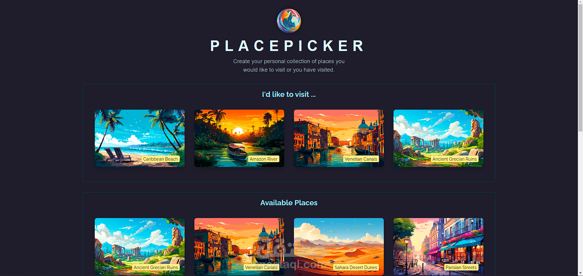 صفحة رئيسية تعرض مجموعة مختارة من الأماكن المميزة.