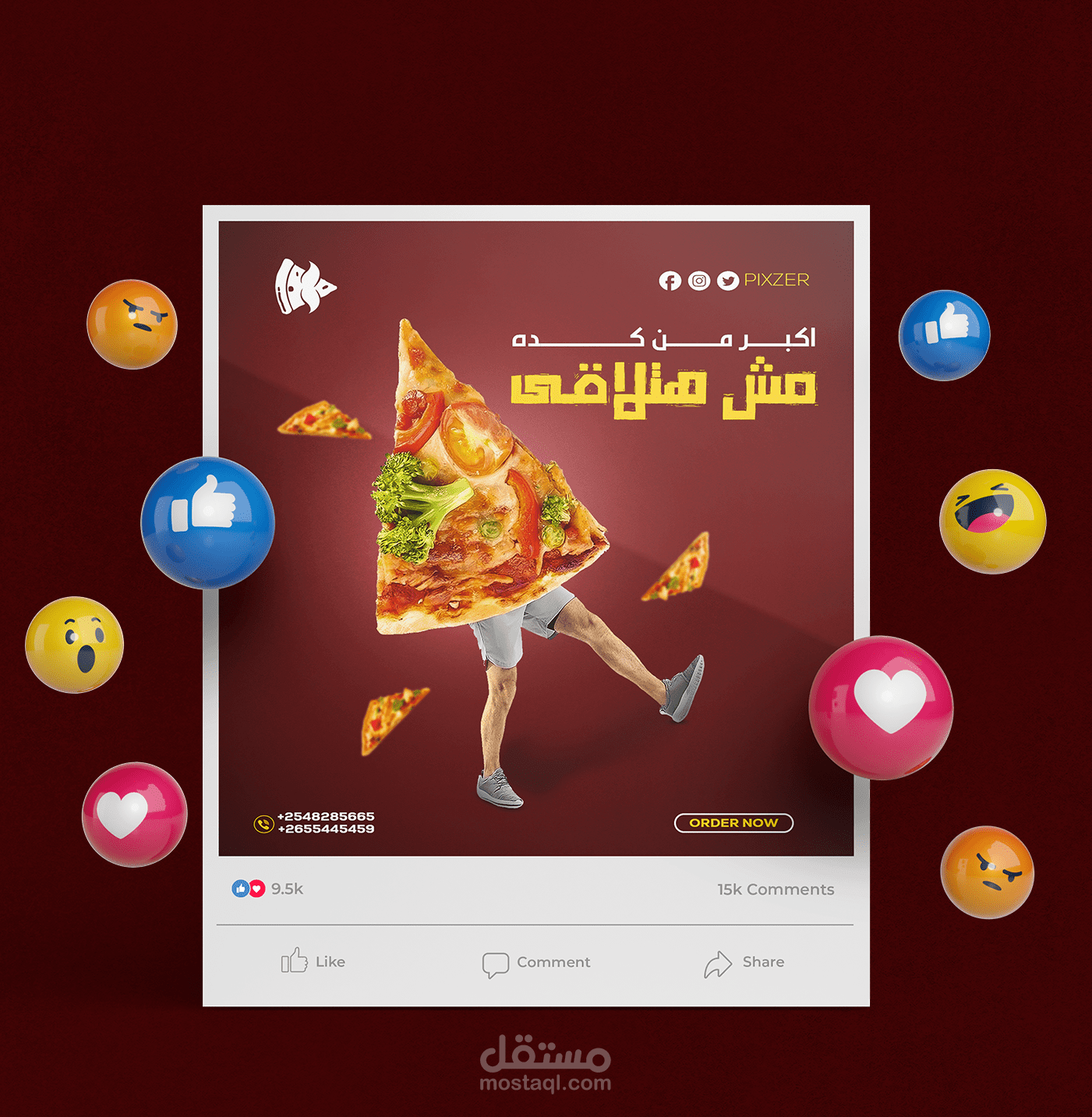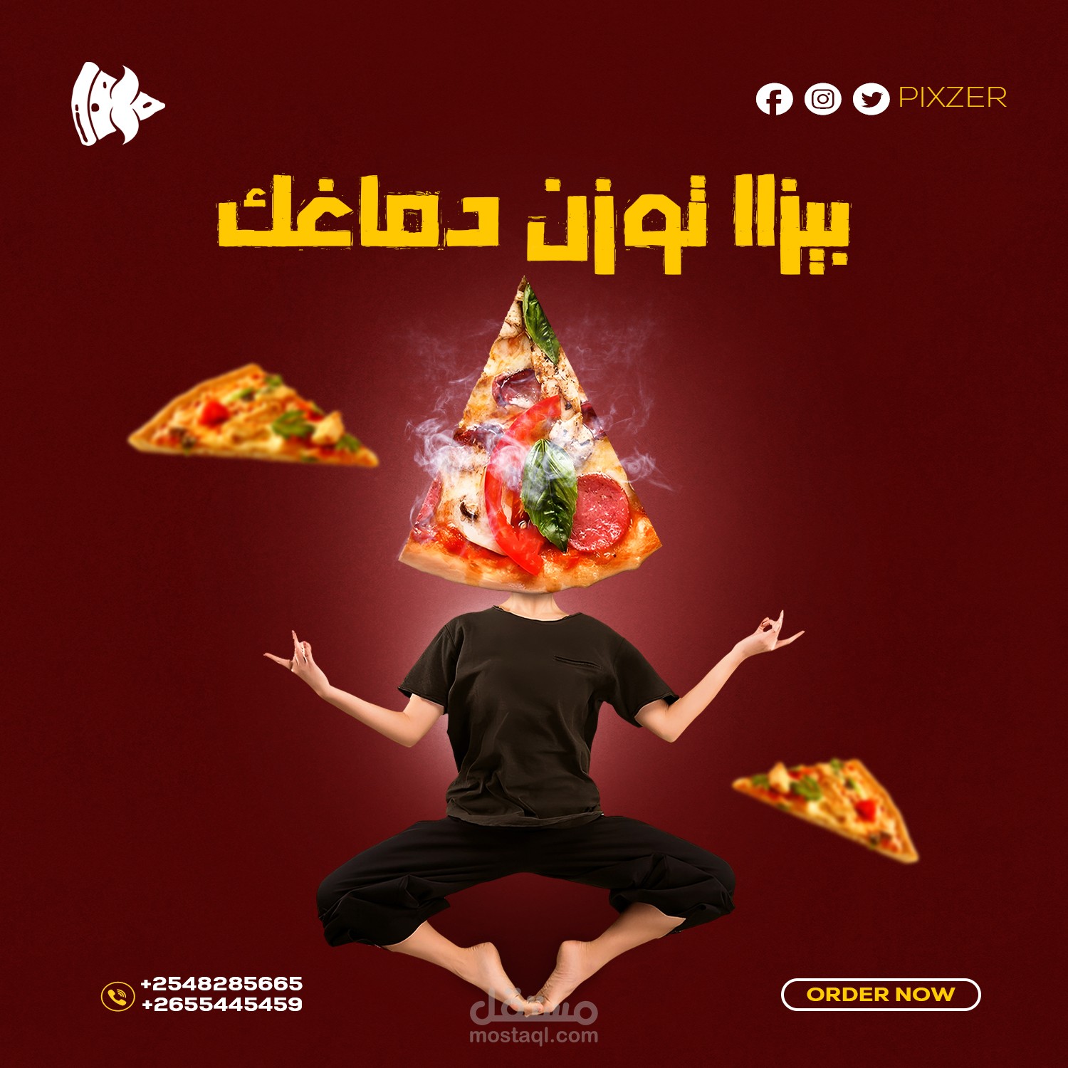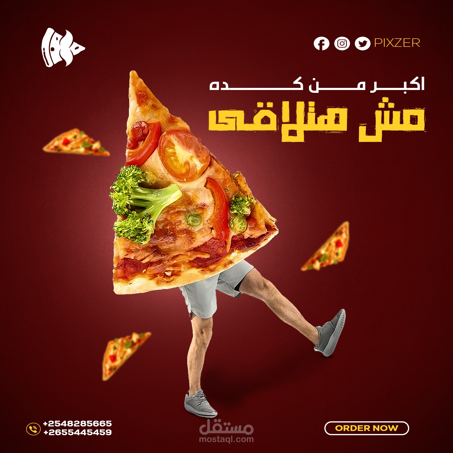 المطلوب كان تنفيذ 4 تصميمات بشكل ملفت الشهية على الطعام وطلب البيزا وبشكل ابداعى ومختلف وملفت للعين وتم التنفيذ بنجاح