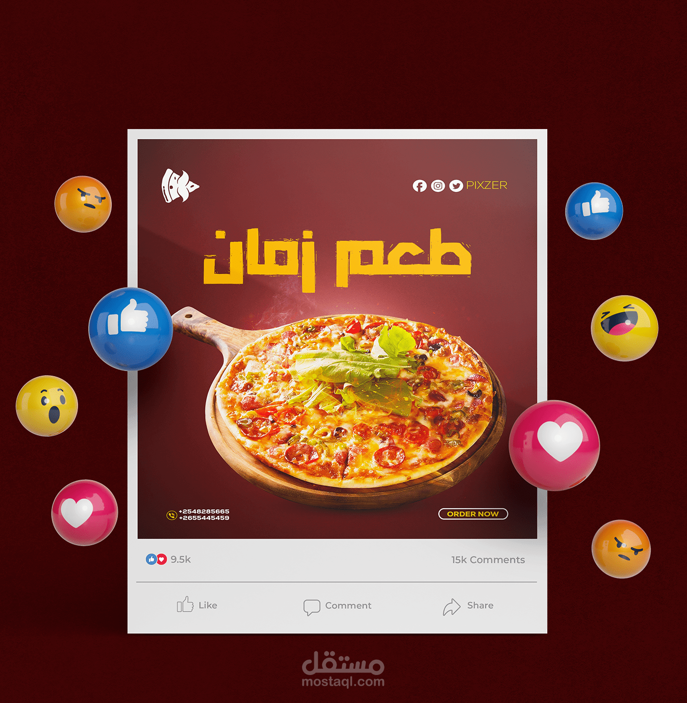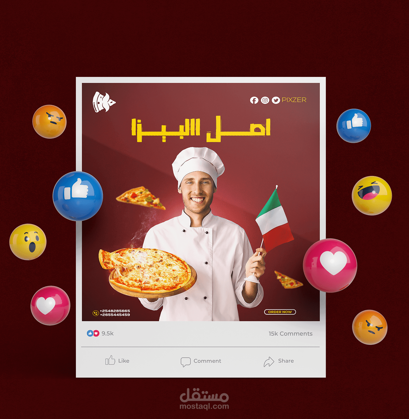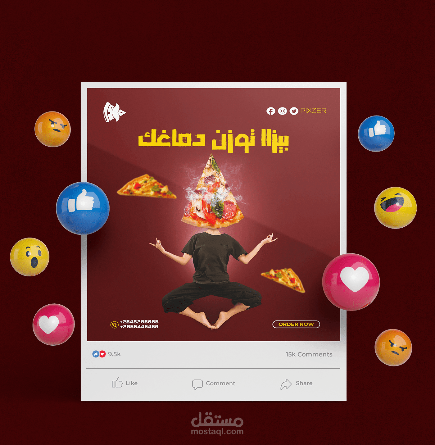المطلوب كان تنفيذ 4 تصميمات بشكل ملفت الشهية على الطعام وطلب البيزا وبشكل ابداعى ومختلف وملفت للعين وتم التنفيذ بنجاح