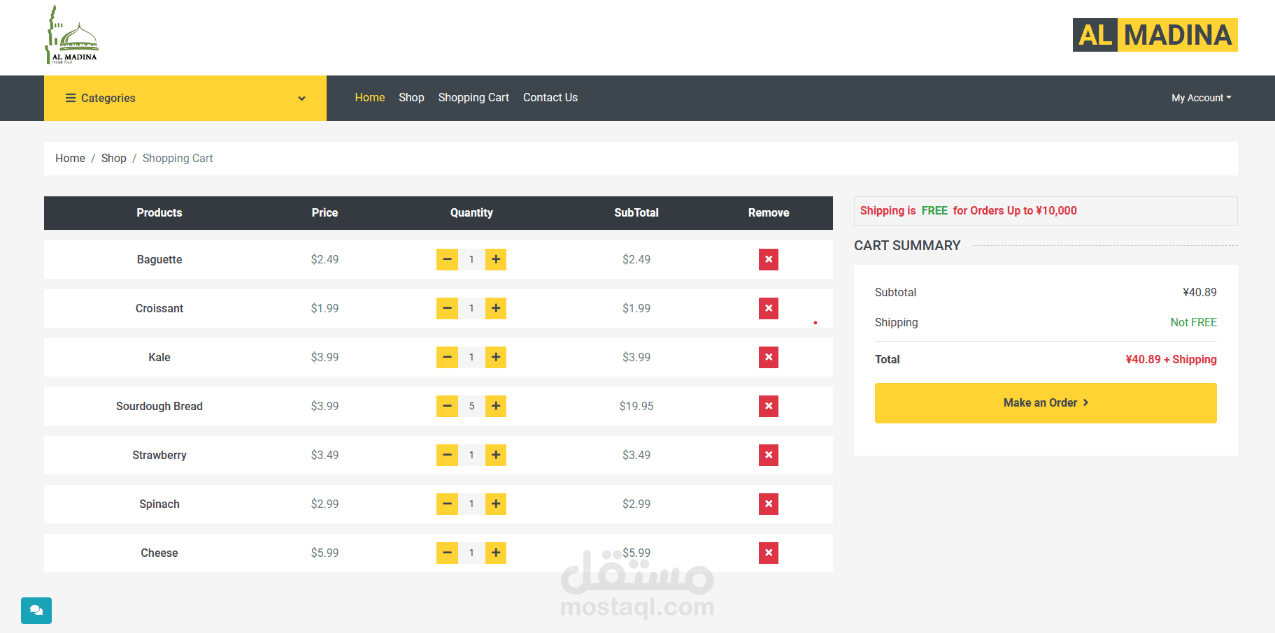 تخيل سوقًا مزدحمًا حيث تكون تجربة التسوق سهلة ومريحة. لقد أنشأت موقعًا للتجارة الإلكترونية يكون بمثابة جنتك الافتراضية للتسوق، مجهزًا بمجموعة متنوعة من الميزات. يمكنك تصفح المنتجات بسهولة، وإضافتها إلى سلة التسوق بسلاسة، وإكمال طلبك بسهولة تامة من خلال خطوات بديهية وسهلة الاستخدام. بالإضافة إلى ذلك، استمتع براحة البال بفضل نظام مصادقة المستخدم القوي الذي يضمن أمانك. خلف الكواليس، لوحة تحكم إدارية ديناميكية تمكنك من إدارة العمليات بكفاءة، مما يجعل إدارة متجرك عبر الإنترنت مرضية تمامًا مثل التسوق فيه.