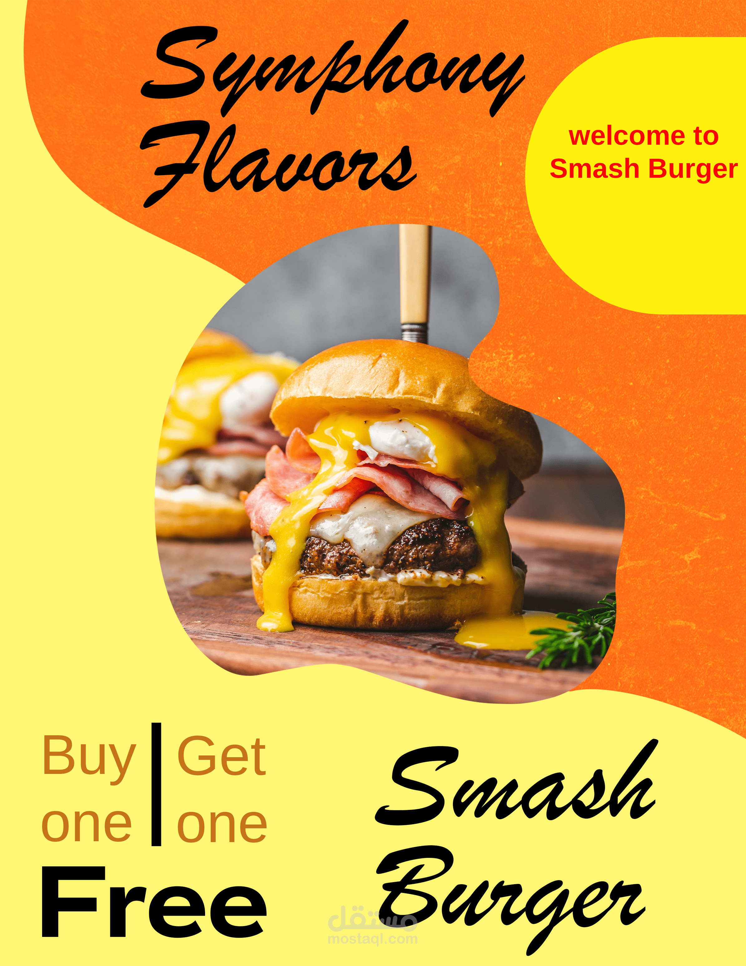 Smash Burger is a brand which specialised in making burgers, with yellow color that represents the cheese and the orange one for meat
