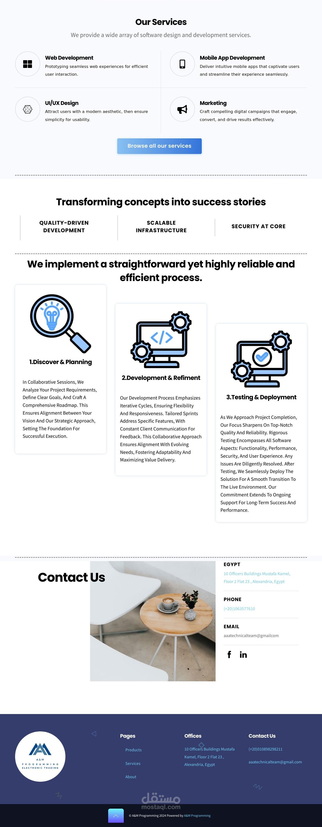 تصميم متجاوب ومتوافق مع جميع الأجهزة: التأكد من أن الموقع مصمم ليكون متجاوبًا ويعمل بكفاءة عبر جميع الأجهزة والشاشات. يجب أن تكون تجربة المستخدم متسقة على أجهزة الكمبيوتر، الهواتف المحمولة، والأجهزة اللوحية.