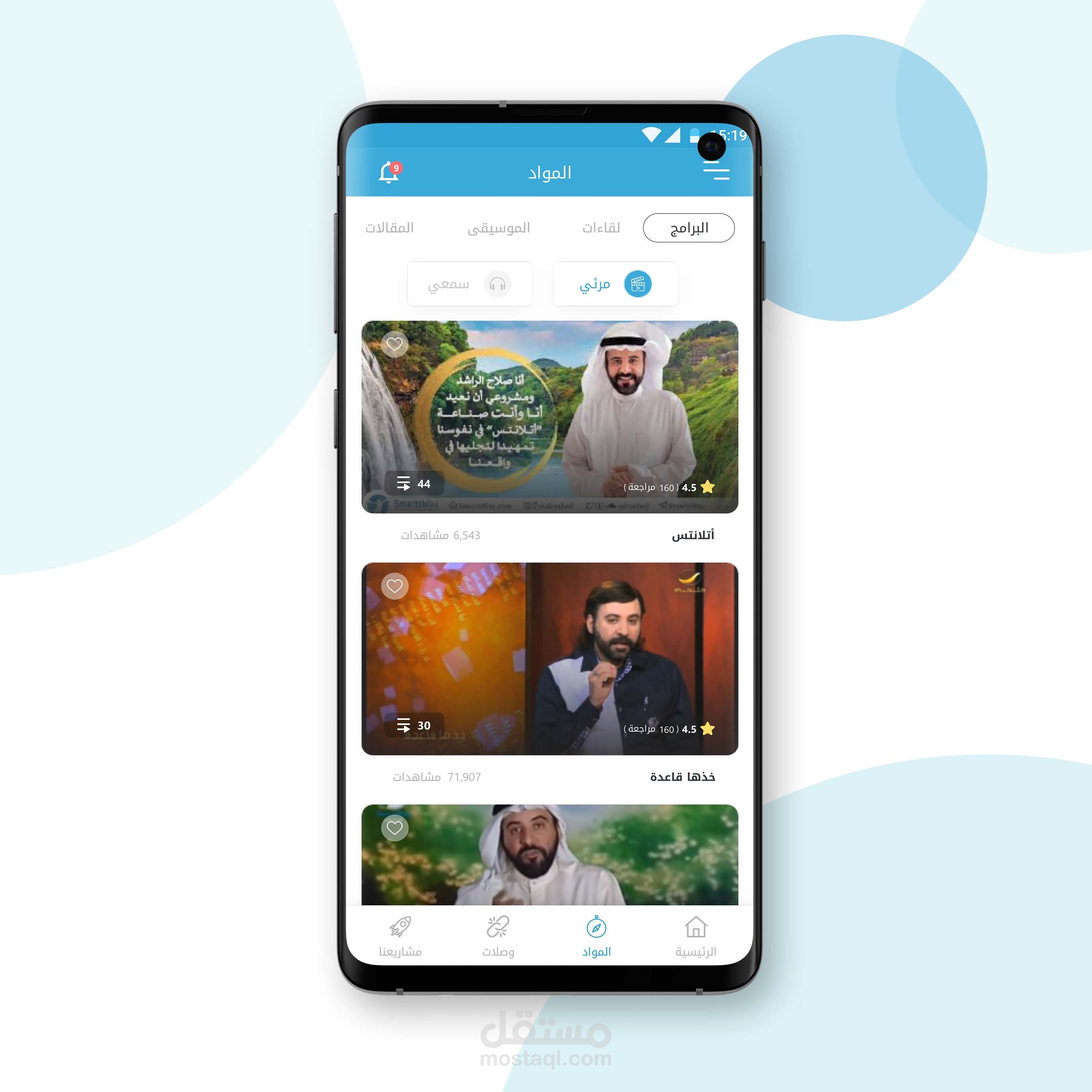 يهتم التطبيق بعرض الكورسات والبرامج في المجالات المختلفة من خلال الفيديو والملفات الصوتية وكذلك يعرض المقالات المتعددة.