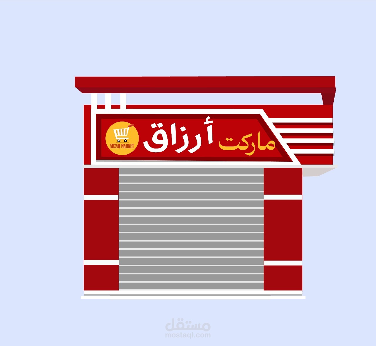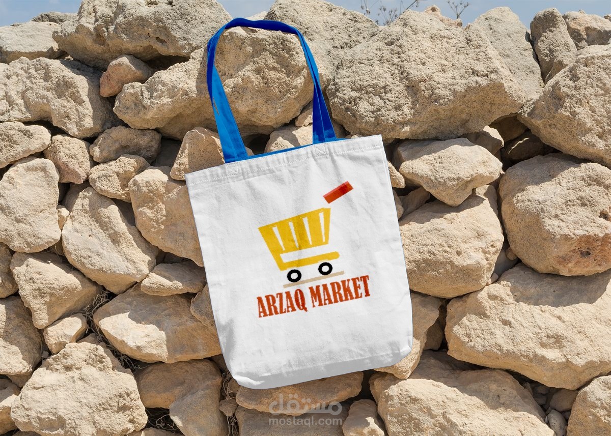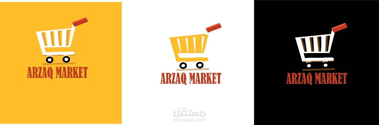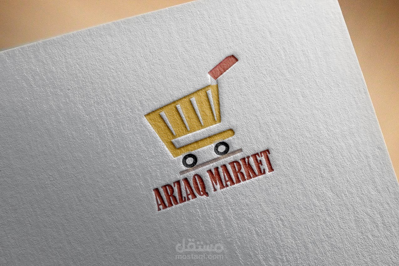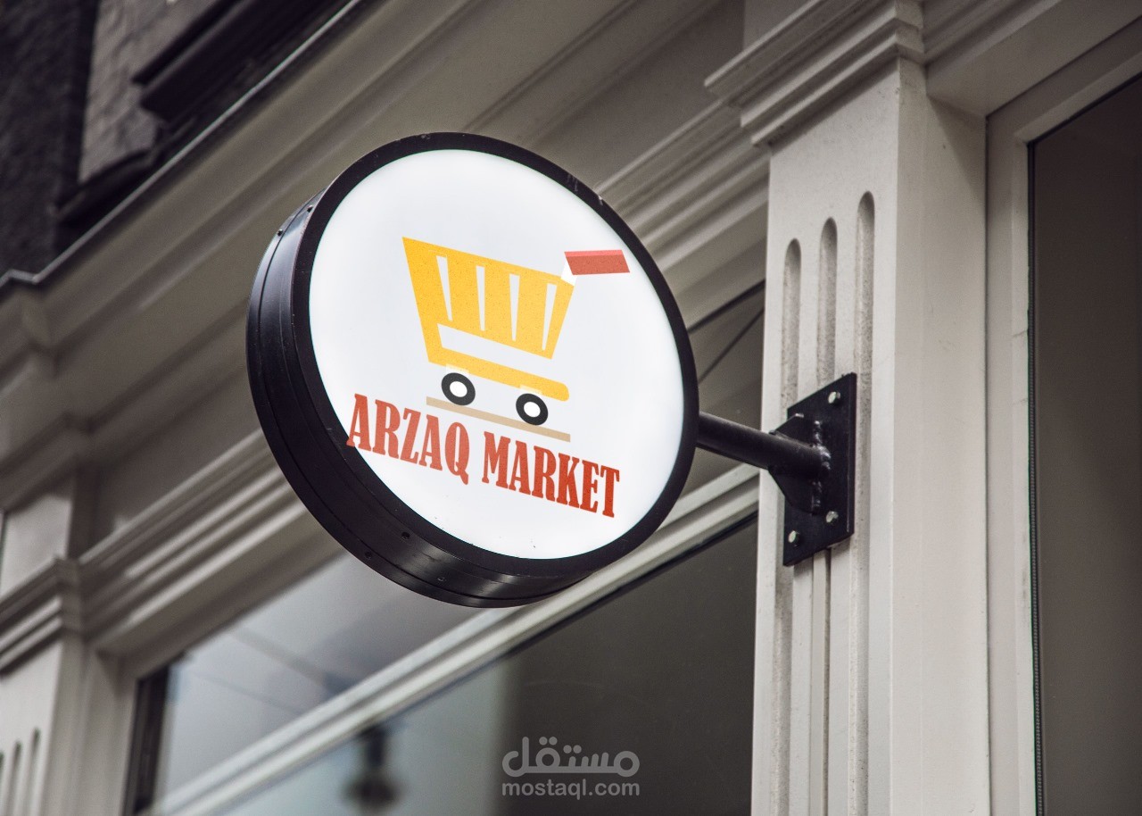 لوجو وواجهة لسوبر ماركت اسمه "أرزاق " استخدمت ألوان ملفتة للنظر مثل الأحمر والأصفر بطابع بسيط وأنيق وغير مزدحم