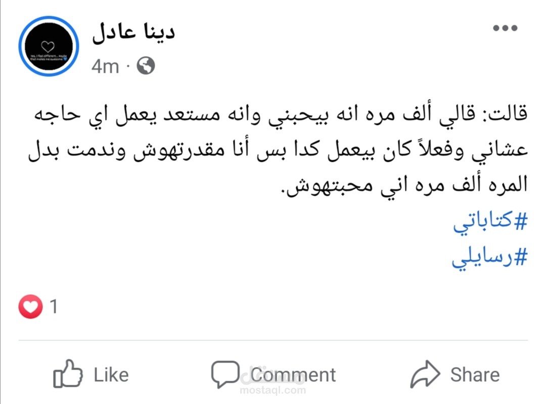 احب كتابة الخواطر والقصص القصيره و انشرها على الفيس بوك
