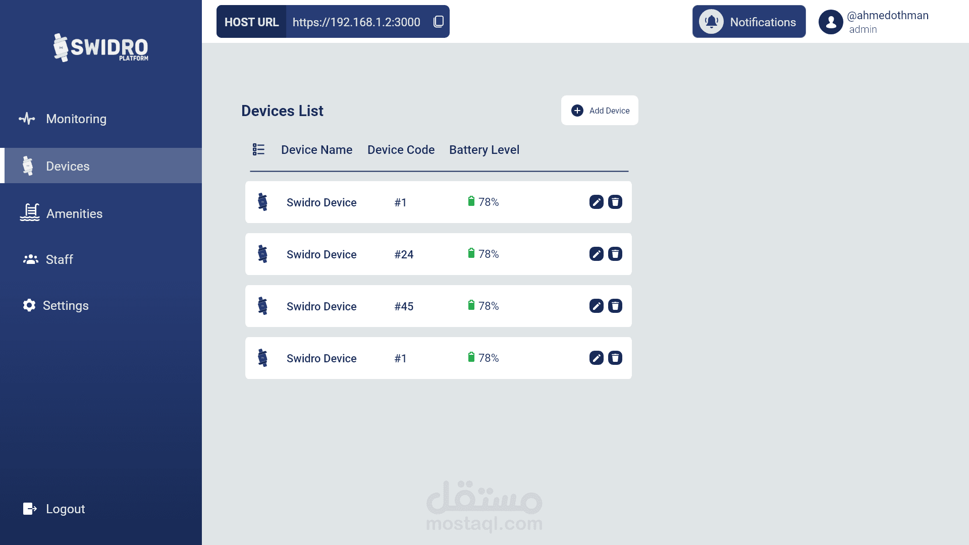 يتضمن هذا المشروع تطوير منصة قائمة على الويب مصممة لإدارة ومراقبة الأجهزة بشكل فعال. ستوفر المنصة للمستخدمين الأدوات التالية: