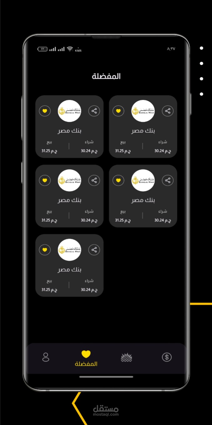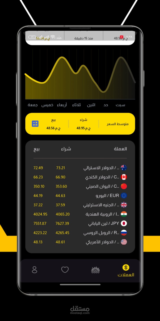 - يعرض التطبيق أسعار العملات المختلفة في البنوك المحلية والسوق السوداء.