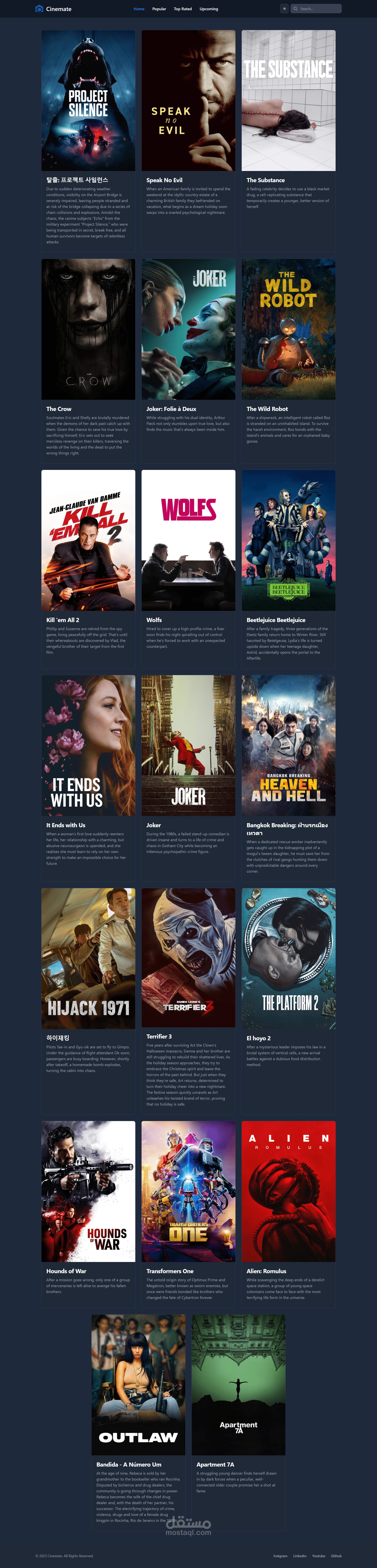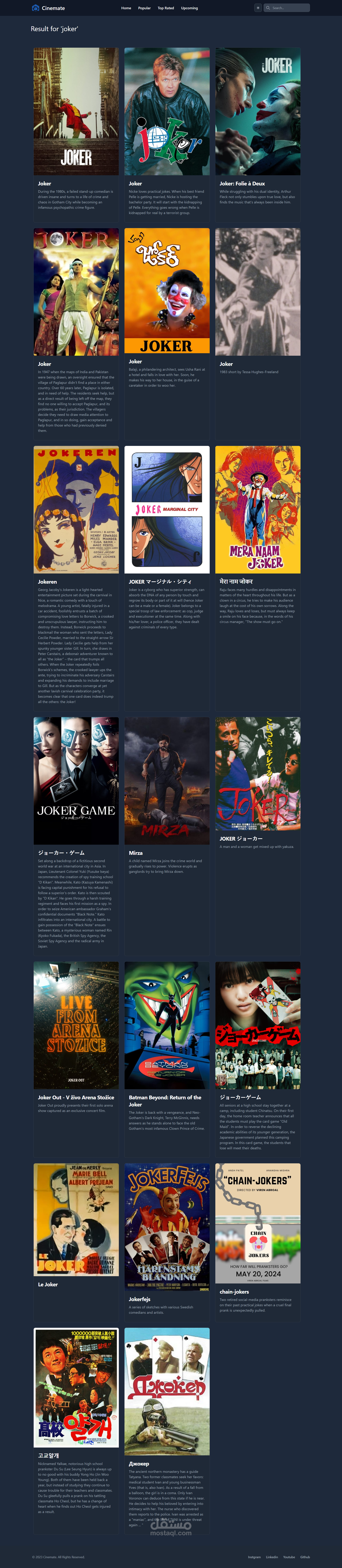 Whether you're looking for the latest releases, top-rated movies, or detailed information on your favorite films, Cinemate has got you covered!