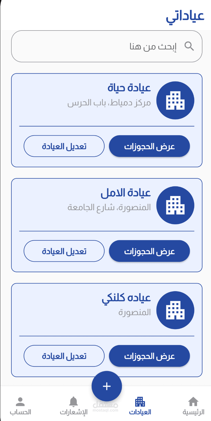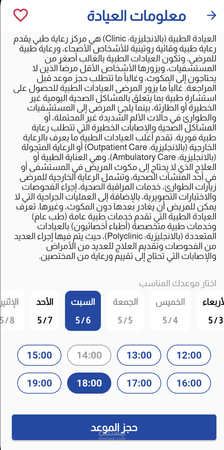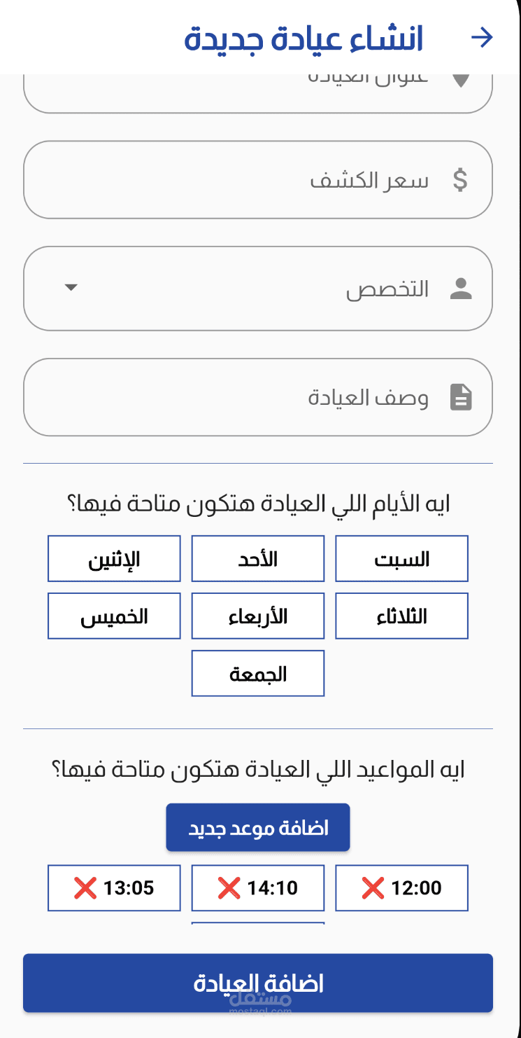 o إدارة العيادات بأيام وساعات عمل مفصلة.