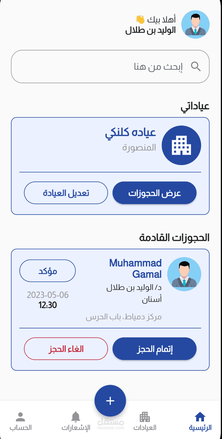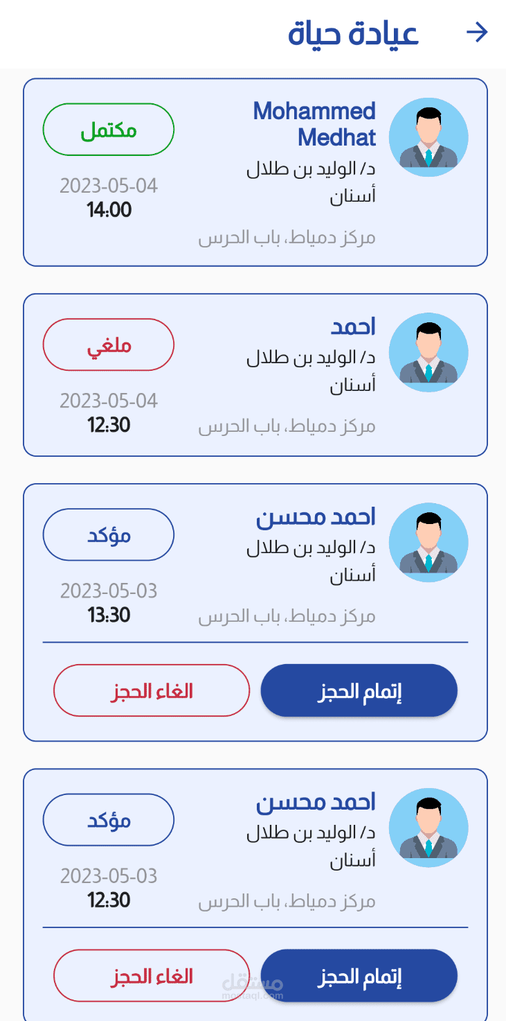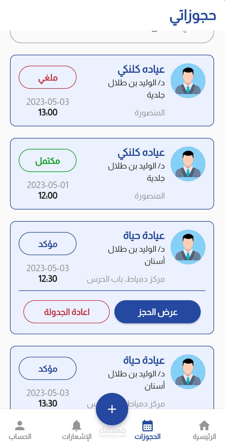 o إدارة المواعيد مع خيارات الإلغاء أو إعادة الجدولة.