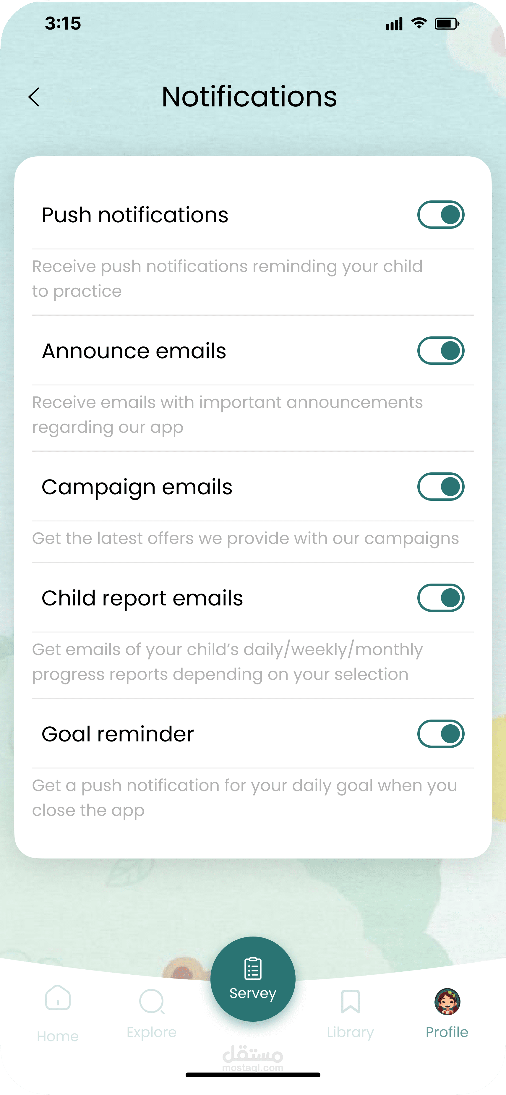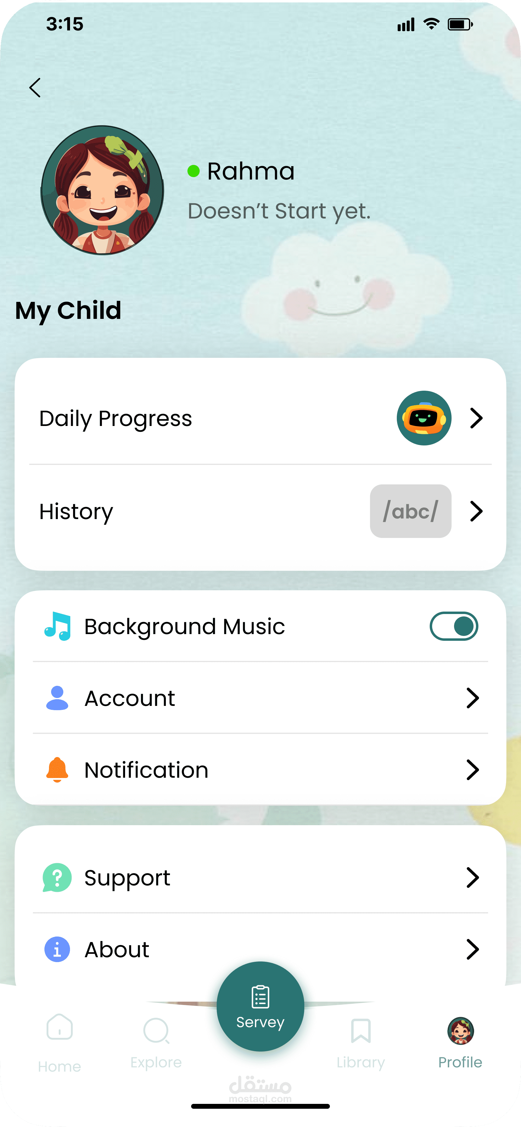 ينتهي كل مستوى باختبار نهائي يتفاوت في الصعوبة بناءً على تقدم الطفل.