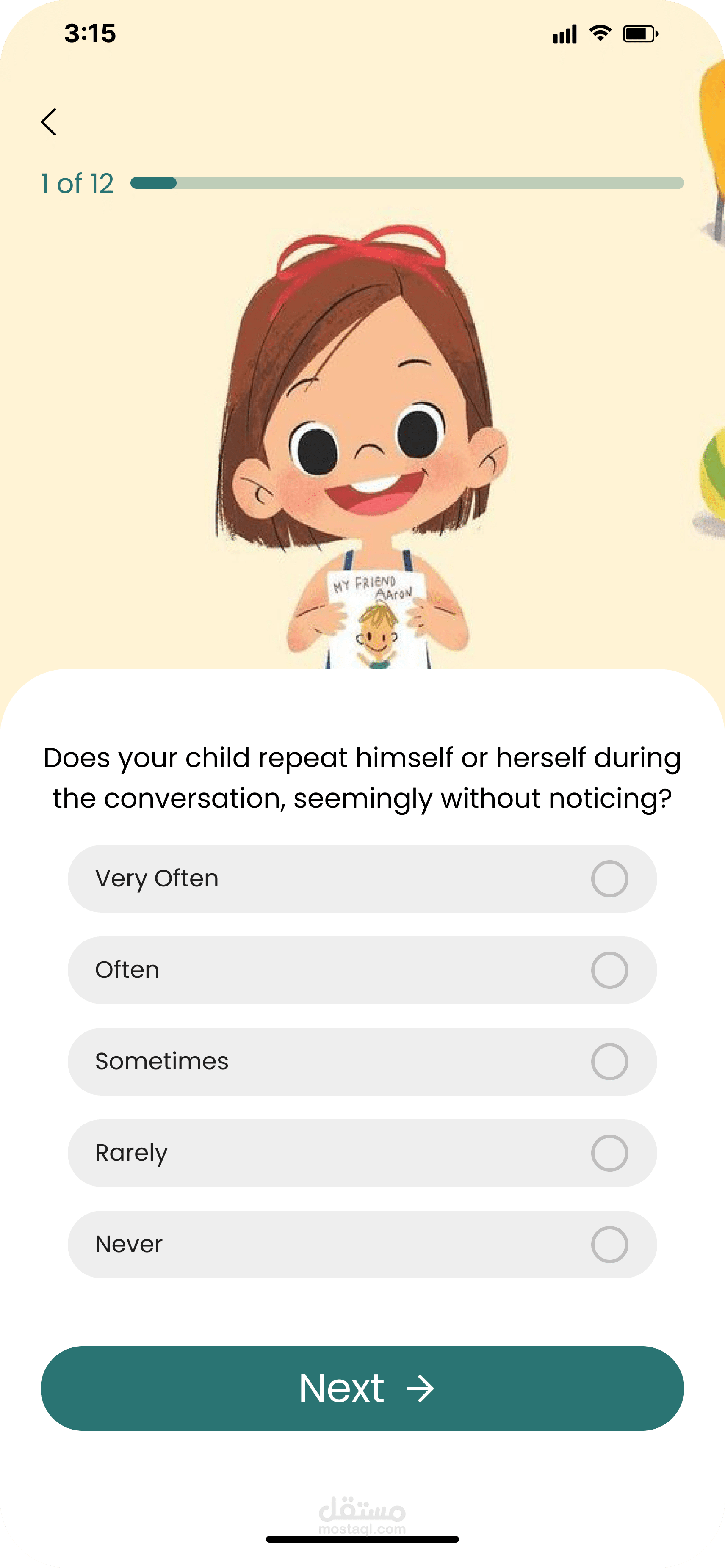 استبيان يهدف إلى تحديد المشاكل الخاصة بكل طفل.