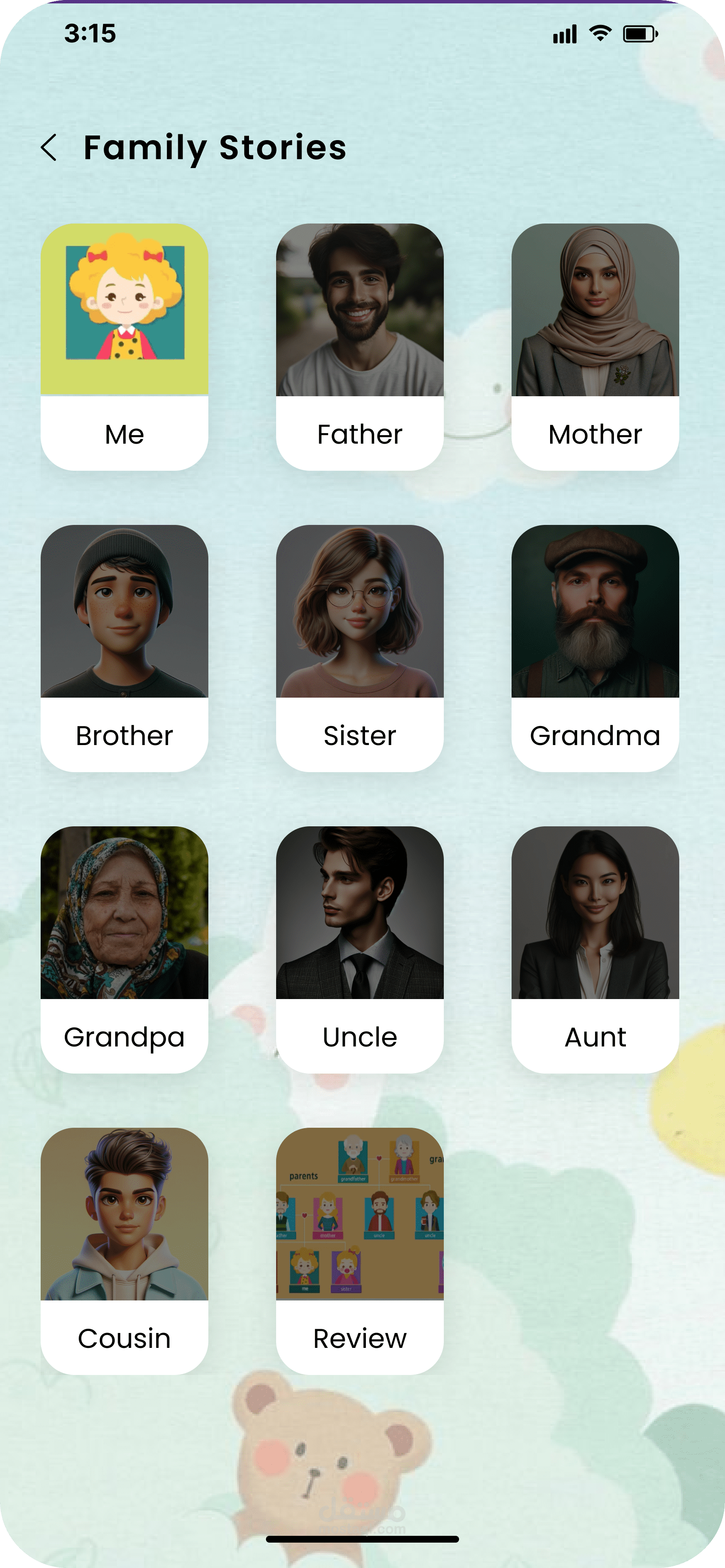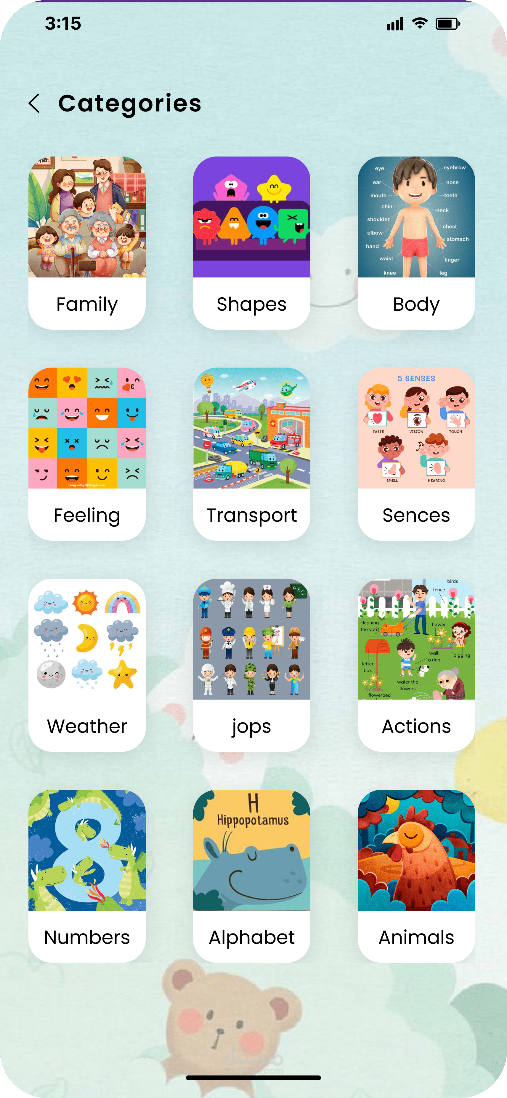 منظم في مستويات وفئات، حيث يحتوي كل مستوى على سلسلة من مقاطع الفيديو المبنية على القصة ليشاهدها الطفل.