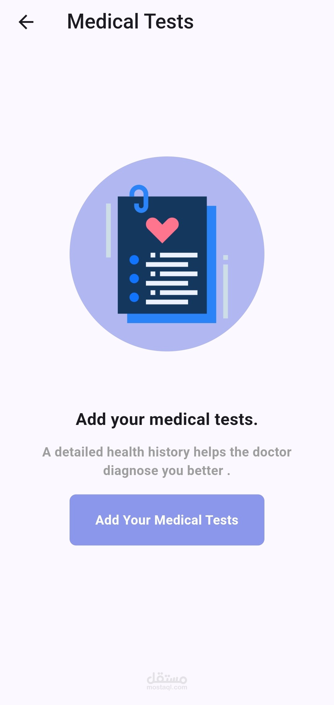 Medical Test Management: Upload medical tests from the gallery, camera, or documents.