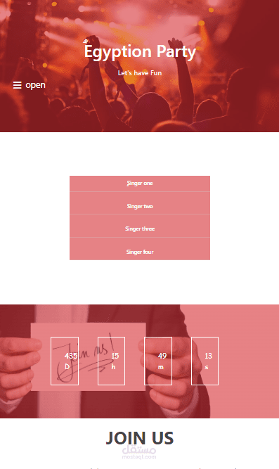 Fully responsive Egyptian-party-website for a company organizing parties to show to the user when and where party is