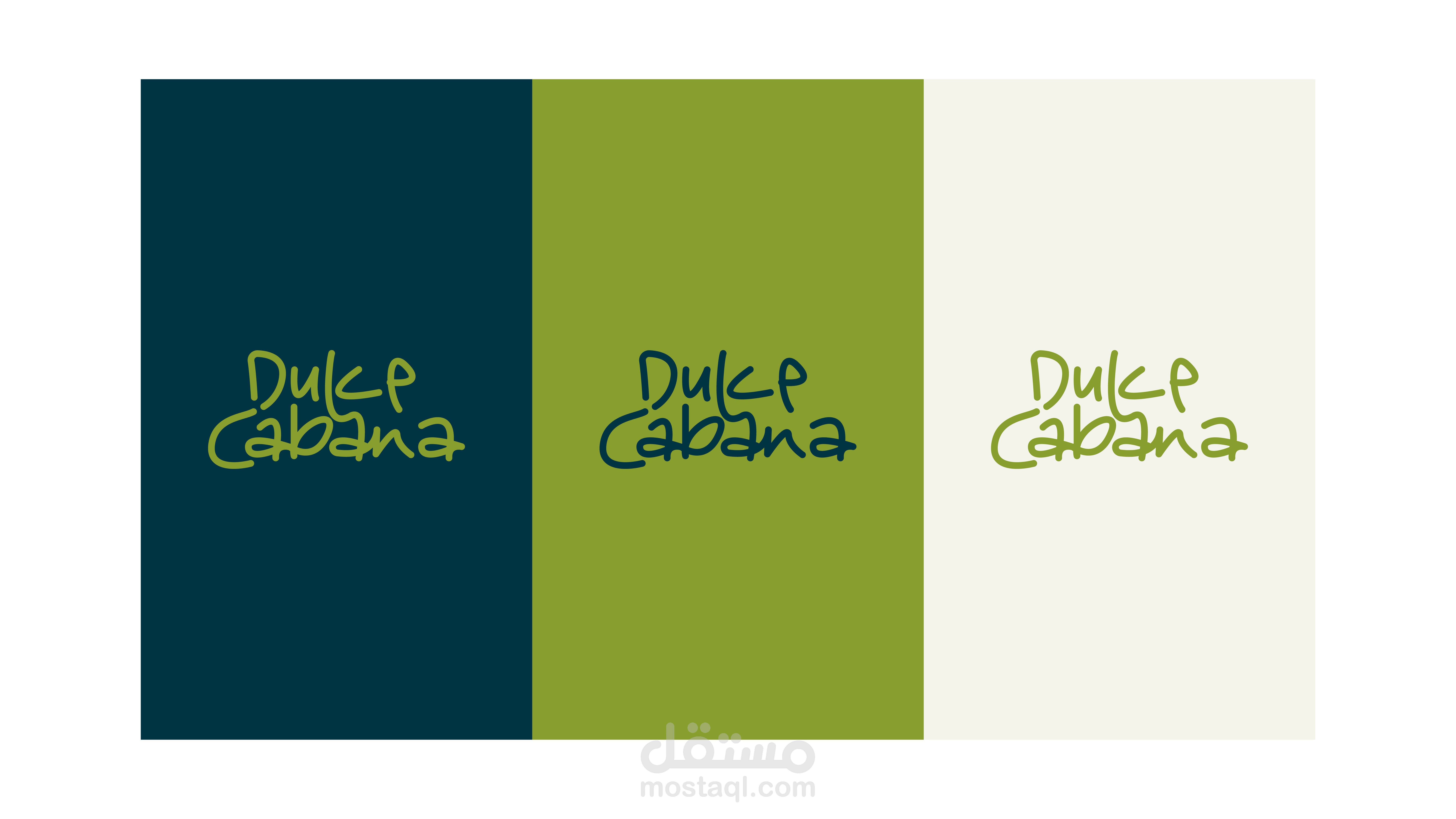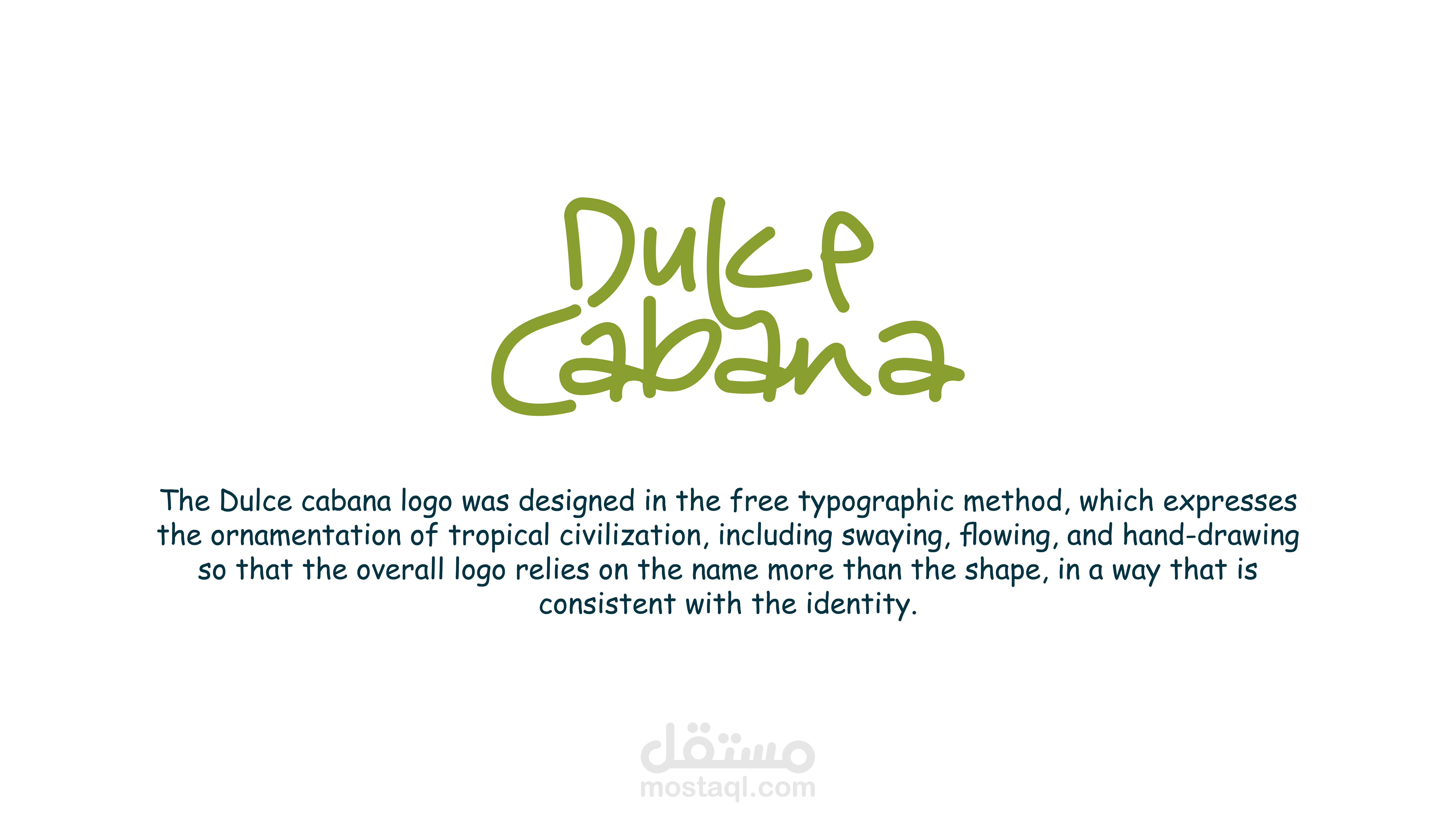 تم تصميم شعارDULCE CABANA بطريقة حديثة وطريقة شبابية تعبر عن المكان وعن المناخ حيث يوحي بالاجواء الصيفية ف اصبح مرتبط بشكل كبير بهوية وديكورات المكان والهوية