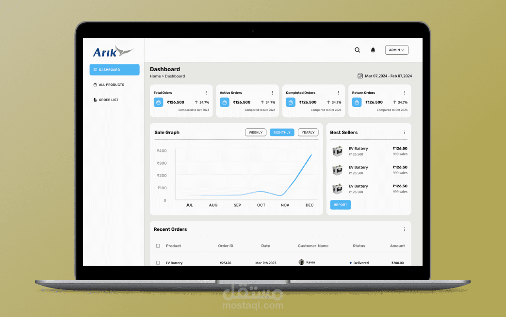 تطبيق ولوحة تحكم "إدارة" لإدارة المتاجر الإلكترونية باستخدام Flutter