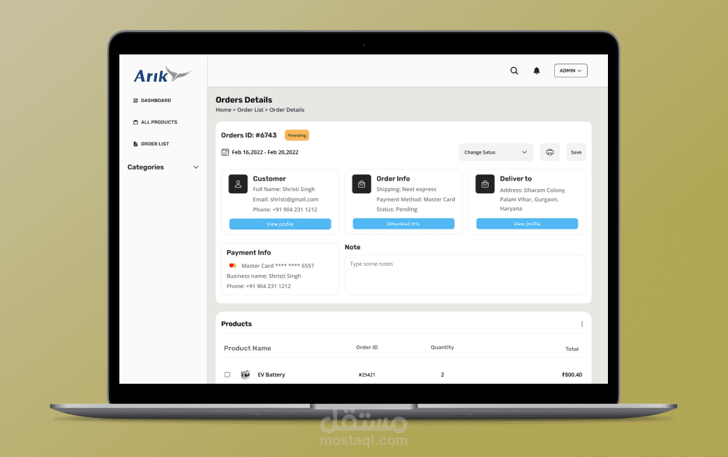 من خلال لوحة التحكم الشاملة، يمكن للمستخدمين مراقبة المبيعات والإيرادات عن كثب، وتحليل الأداء من خلال مجموعة متنوعة من الرسوم البيانية والإحصائيات. كما يوفر التطبيق معلومات تفصيلية حول كل طلب، بما في ذلك حالة الطلب، بيانات العميل، وتاريخ الشحن. هذا يساعد في تحسين إدارة العمليات وتقديم خدمة عملاء أفضل.