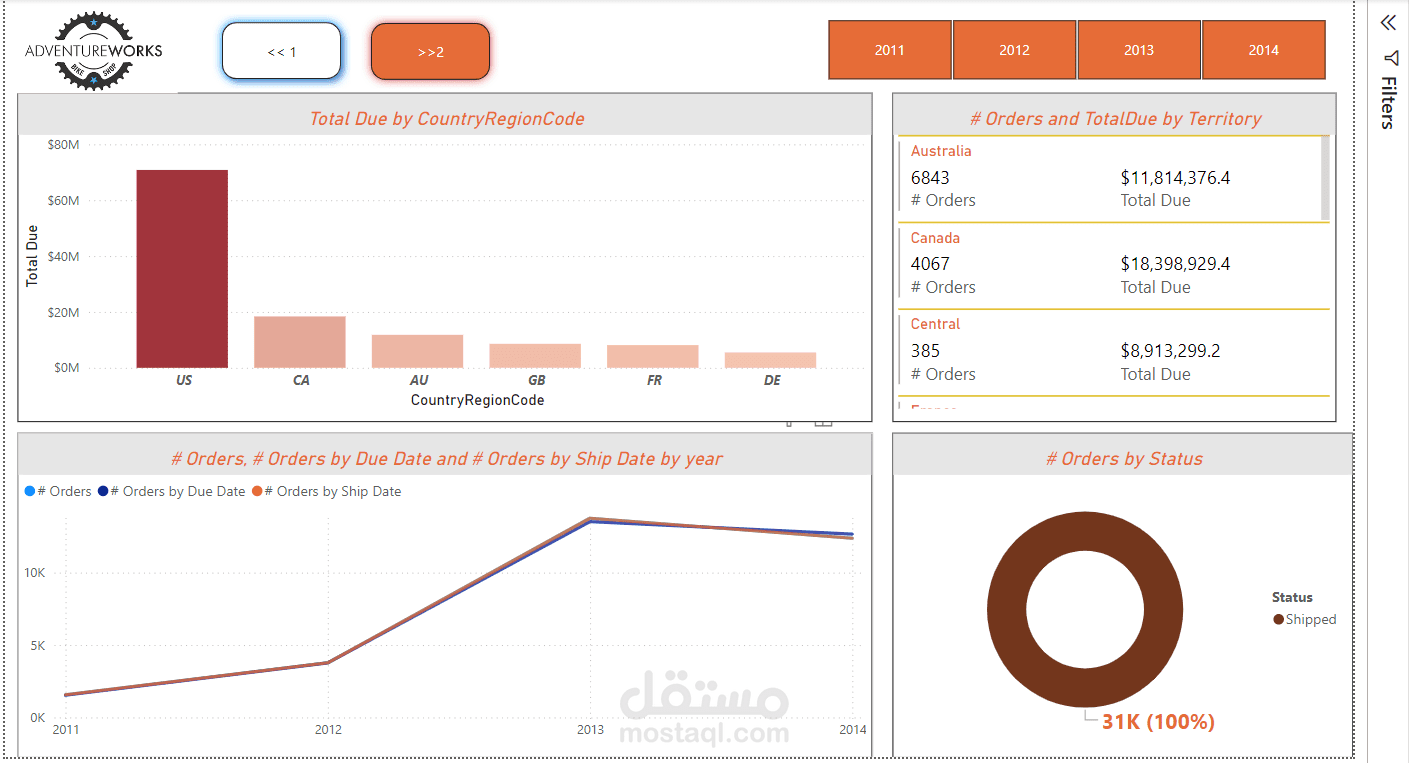 عدد الطلبات، عدد الطلبات حسب تاريخ الاستحقاق، وعدد الطلبات حسب تاريخ الشحن عبر السنوات من 2011 إلى 2014.