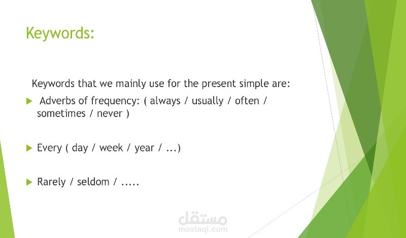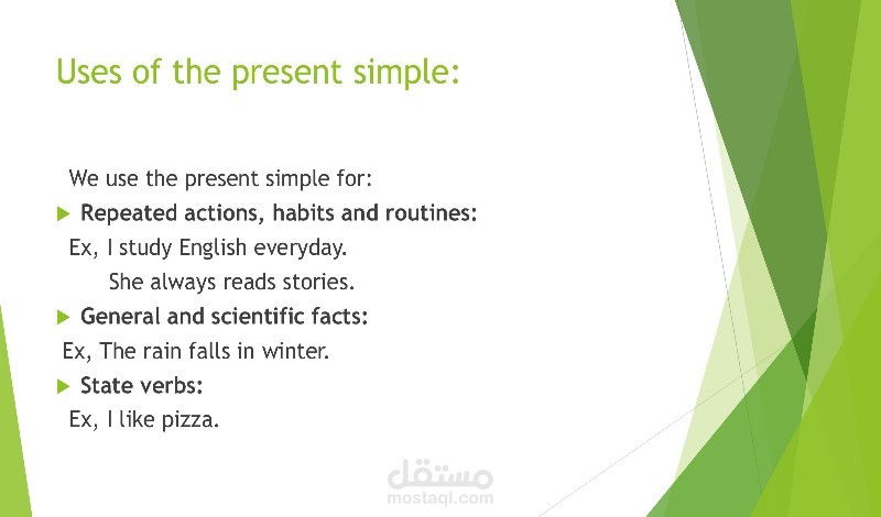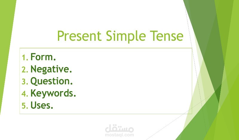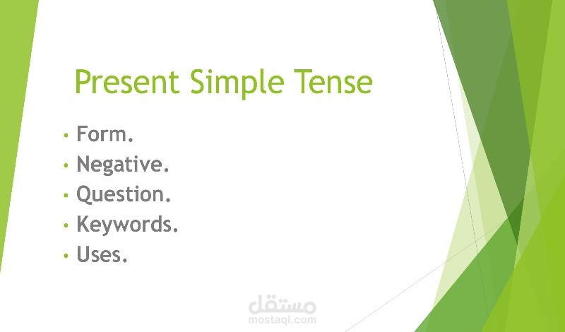 - متى نستخدم الزمن المضارع البسيط (للحقائق العامة، الروتين اليومي، الحقائق الثابتة).
