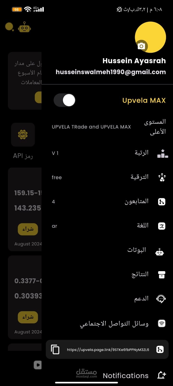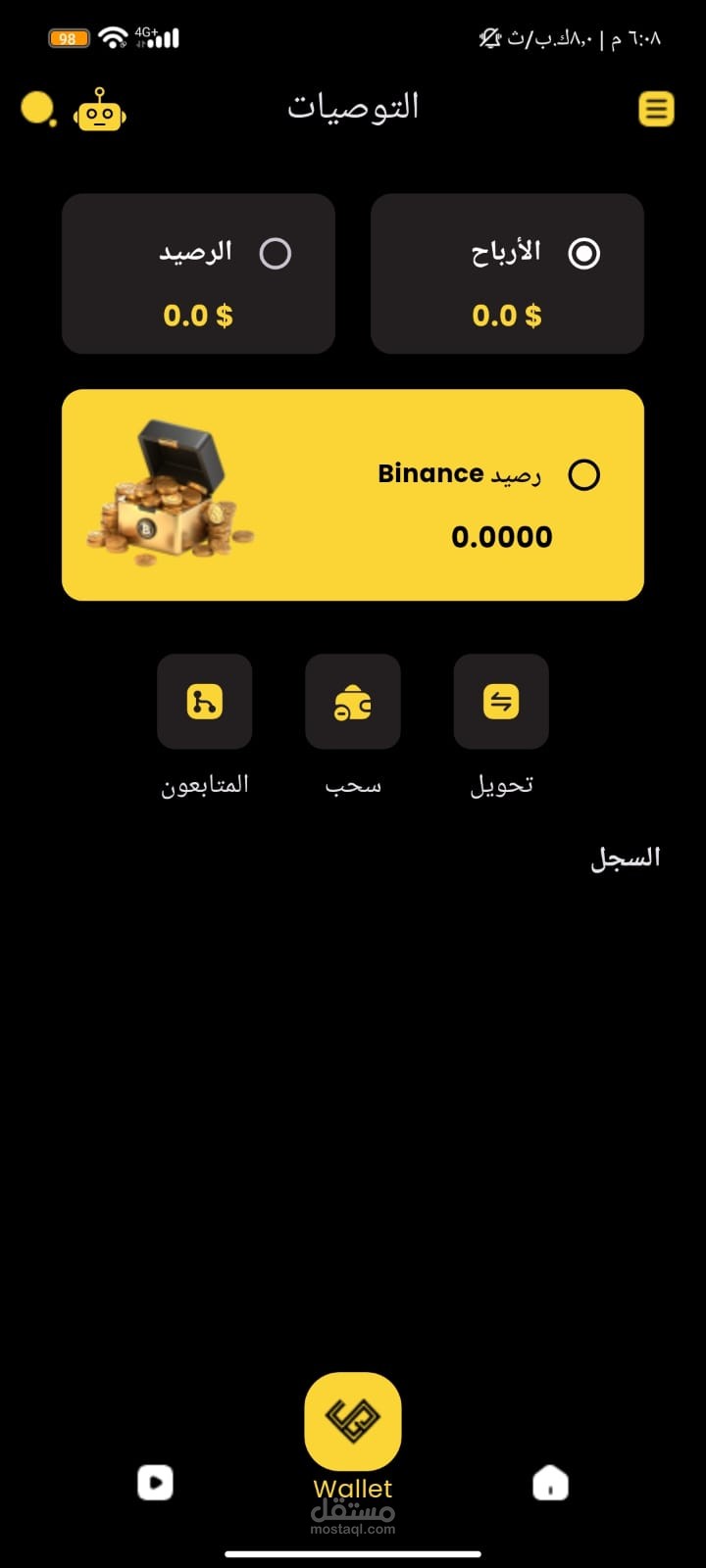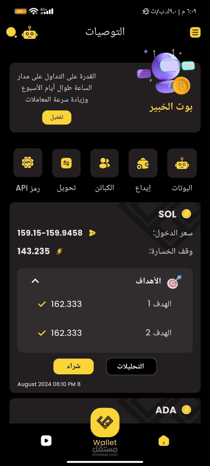تطبيق تدوال بالعملات الرقميه م ربوط في بوت مع منصة بايننس