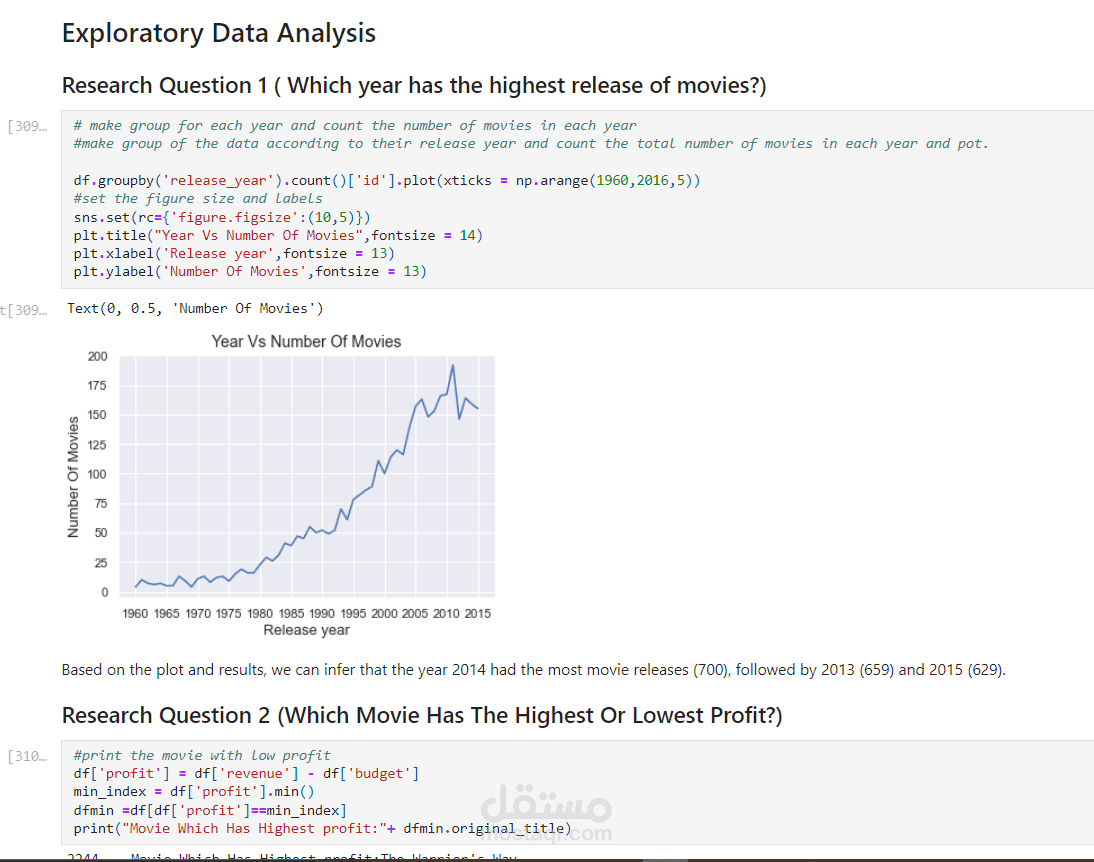 تحتوي مجموعة البيانات هذه على معلومات حول 10,000 فيلم تم جمعها من قاعدة بيانات الأفلام (TMDb)، بما في ذلك تقييمات المستخدمين والإيرادات. استخدمت في هذا المشروع لغه Python