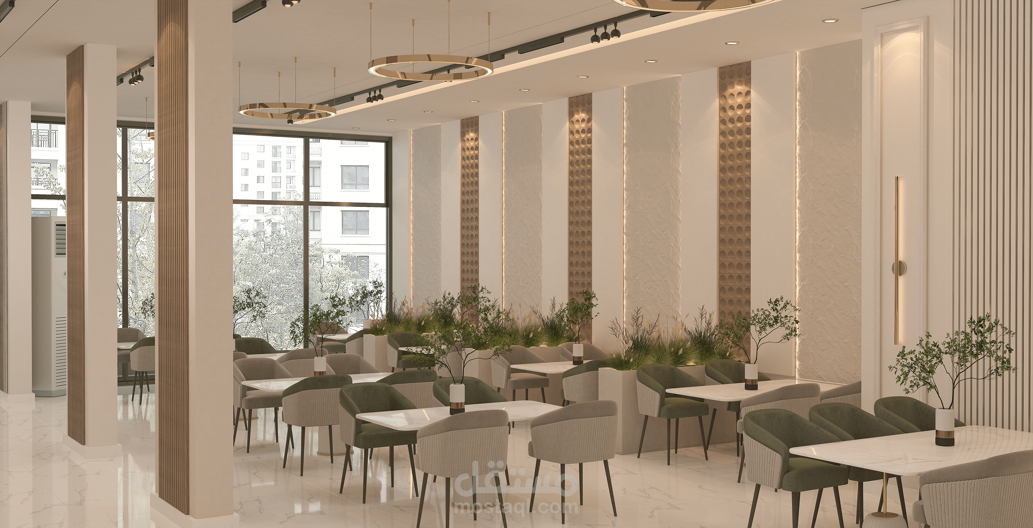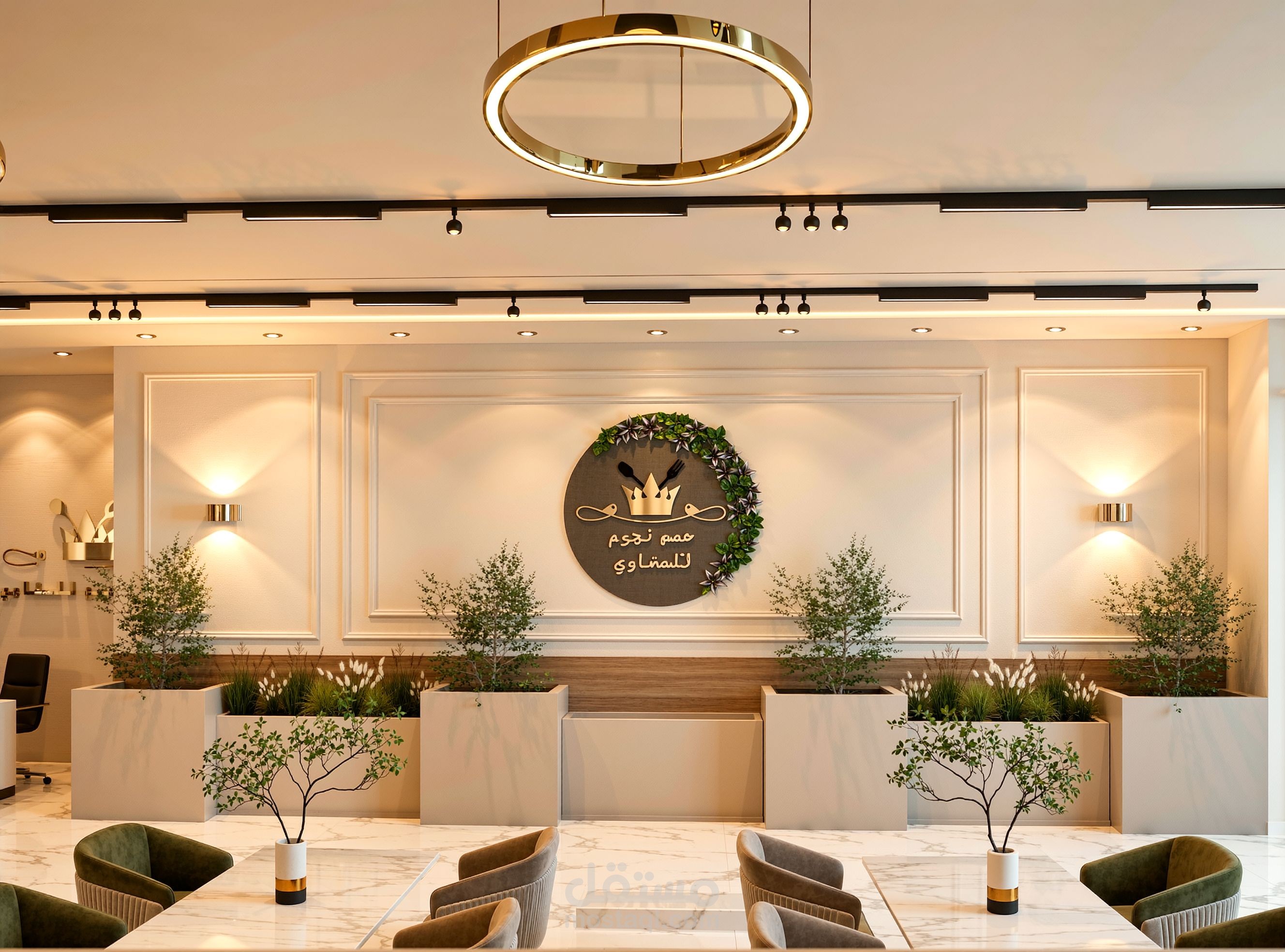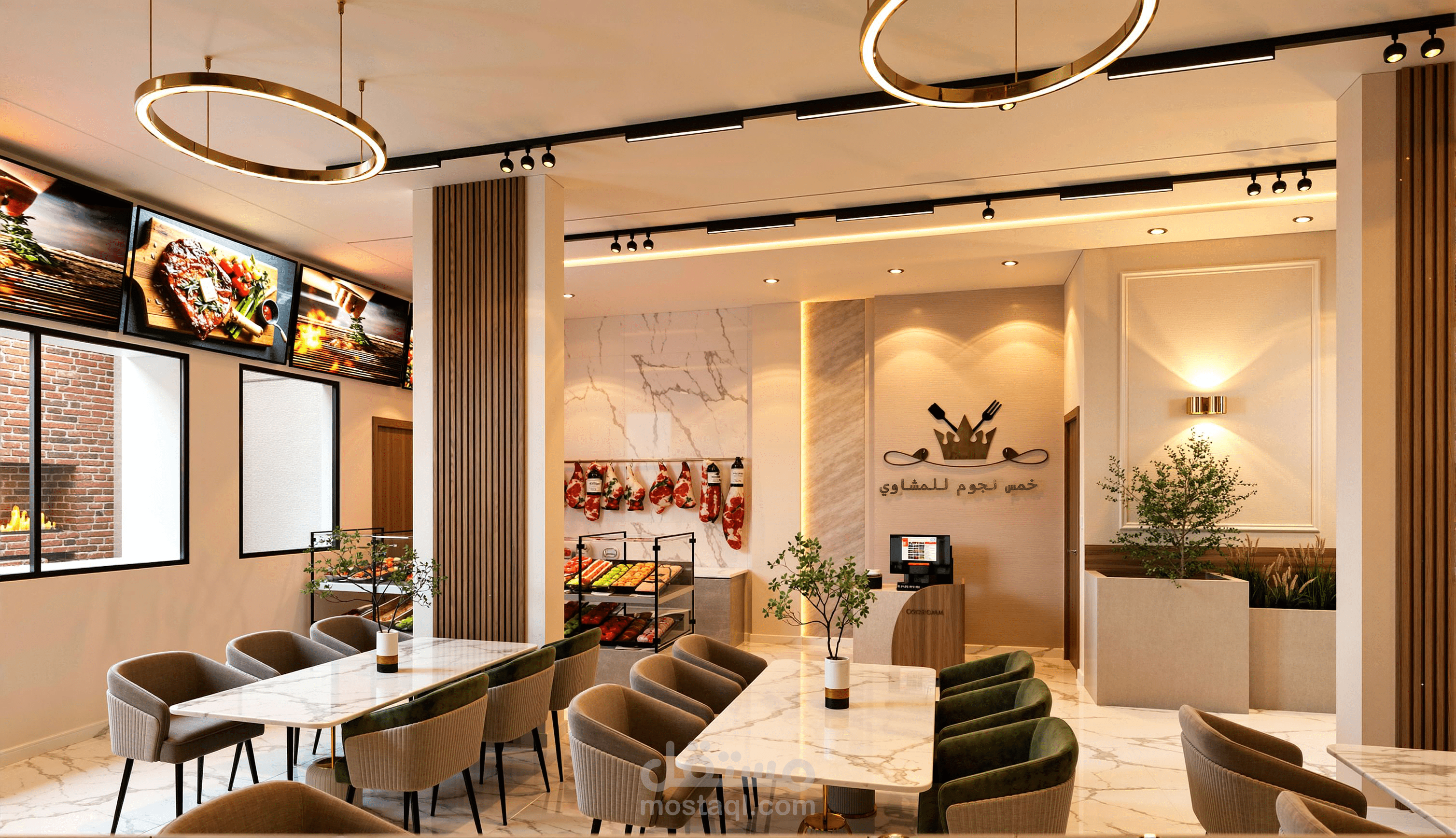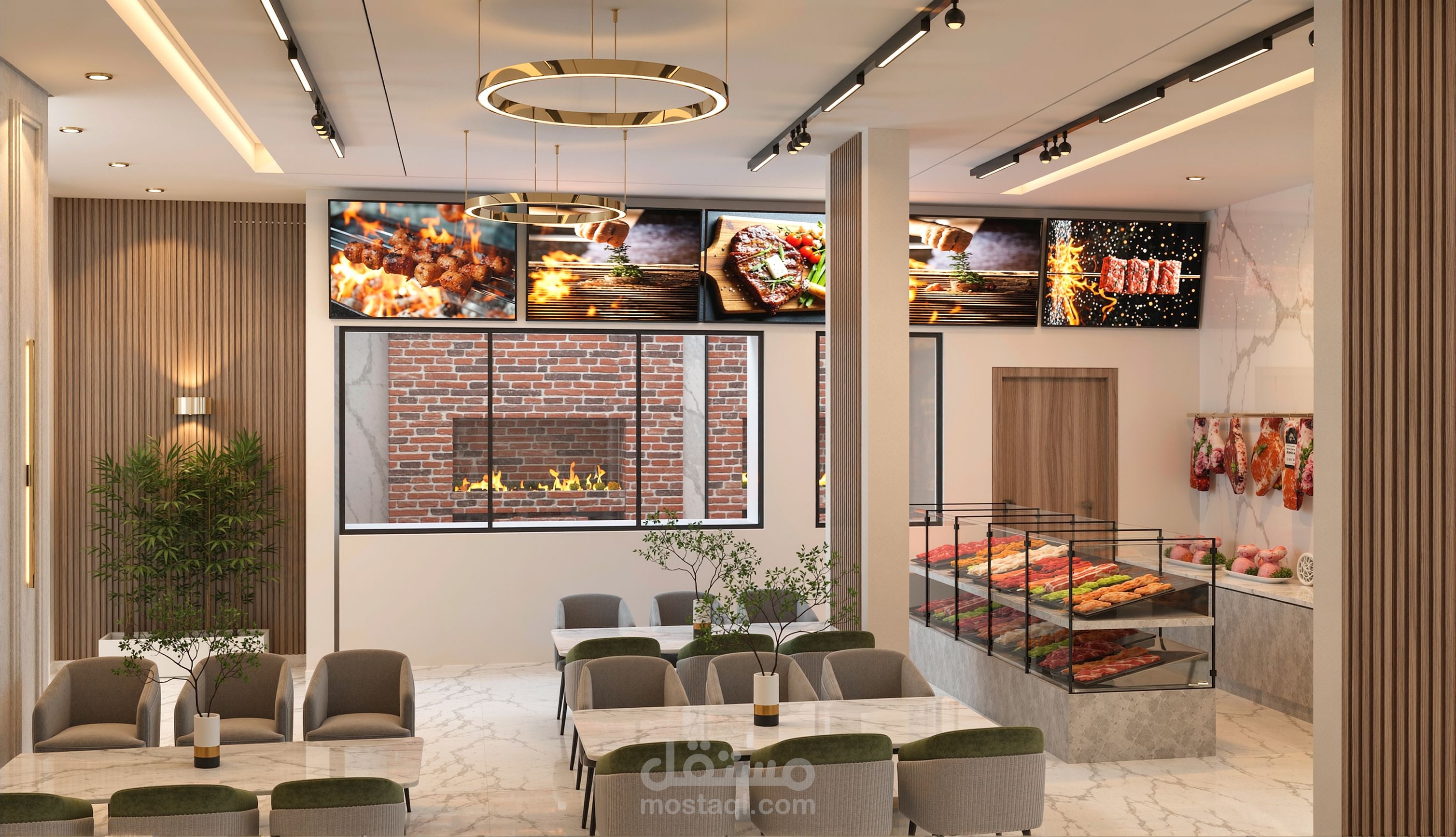تنفيذ تصميم معماري و داخلي كامل لمطعم مشويات في المملكه العربيه السعوديه يشمل توزيع المساحات و اختيار الخامات و انتاج صور رندر واقعيه عاليه الجوده باستخدام 3D Max - Vray- Autocad - Adobe photoshop