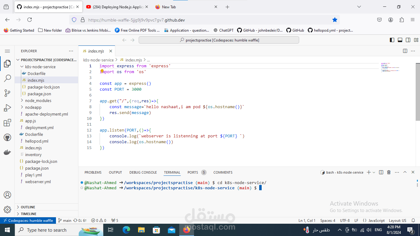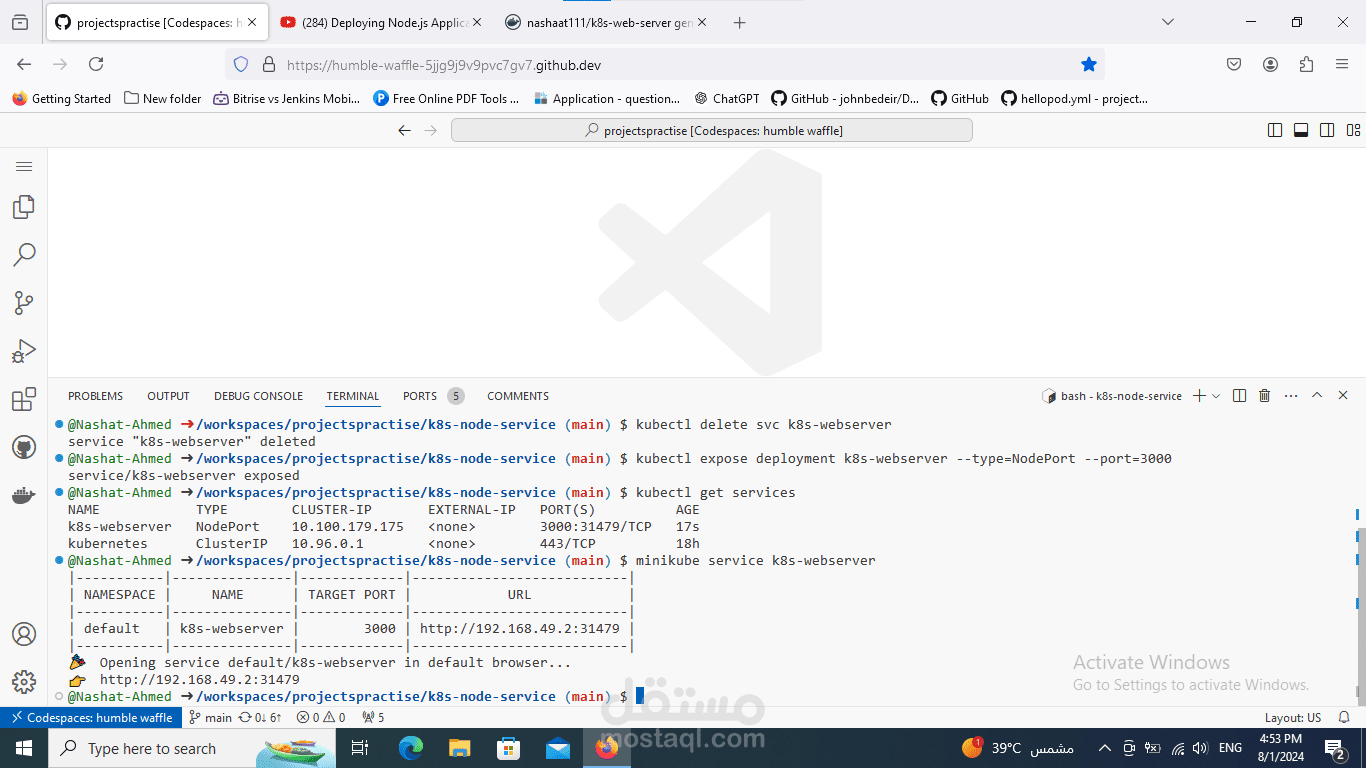 يضمن هذا الإعداد تشغيل تطبيق Node.js في بيئة قابلة للتوسيع والتعافي الذاتي، حيث تتولى Kubernetes إدارة النشر والتوسع.