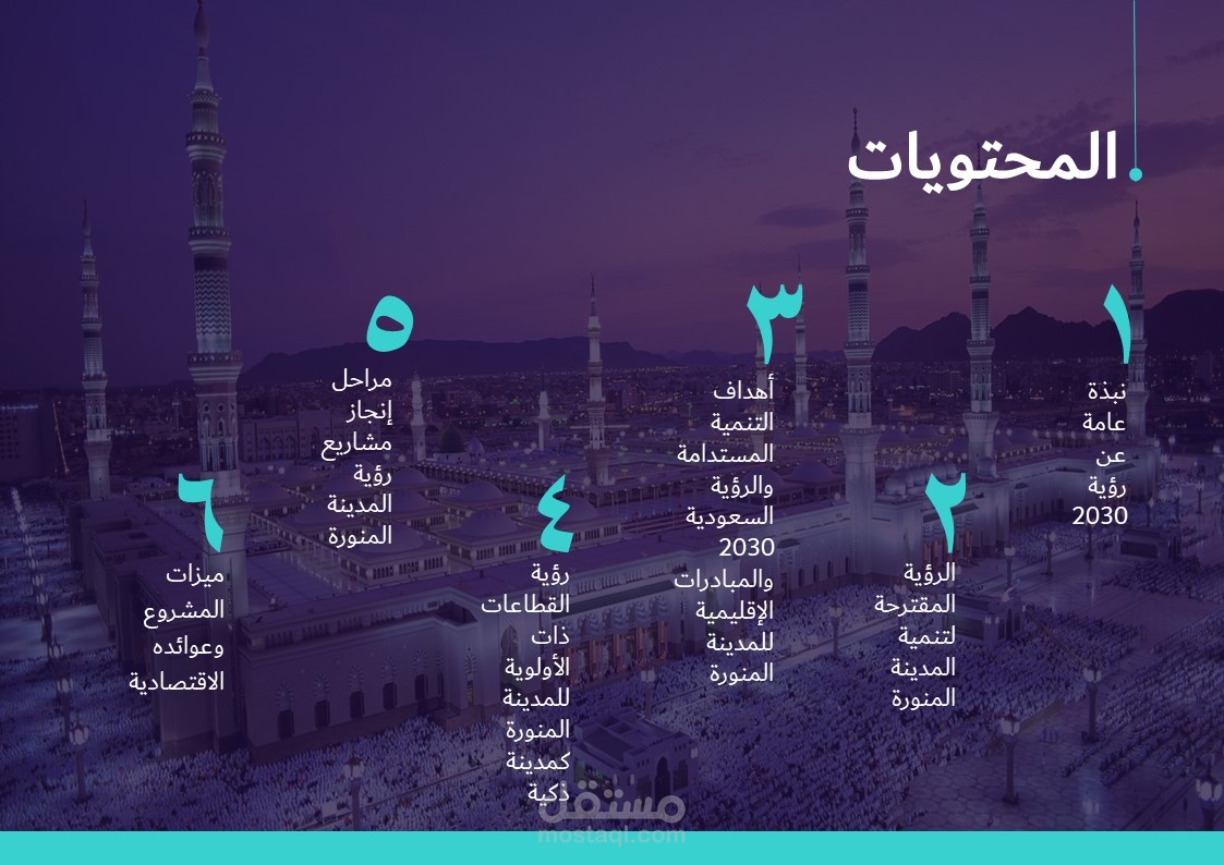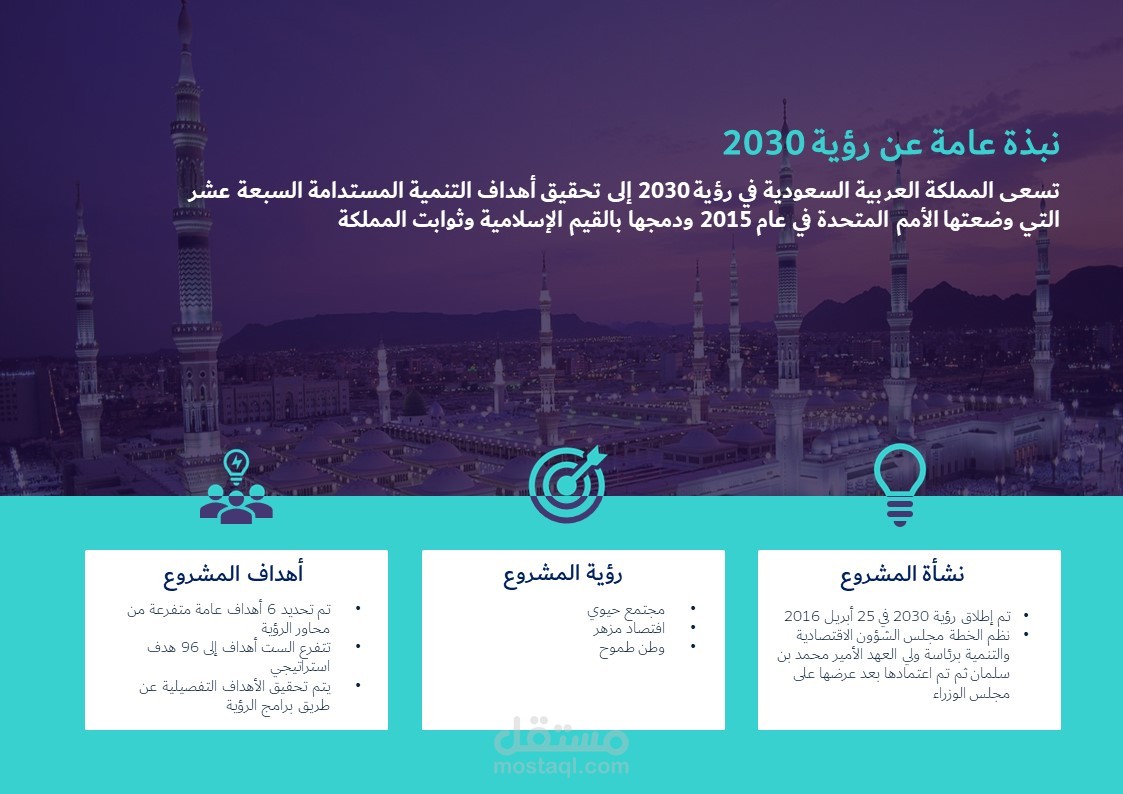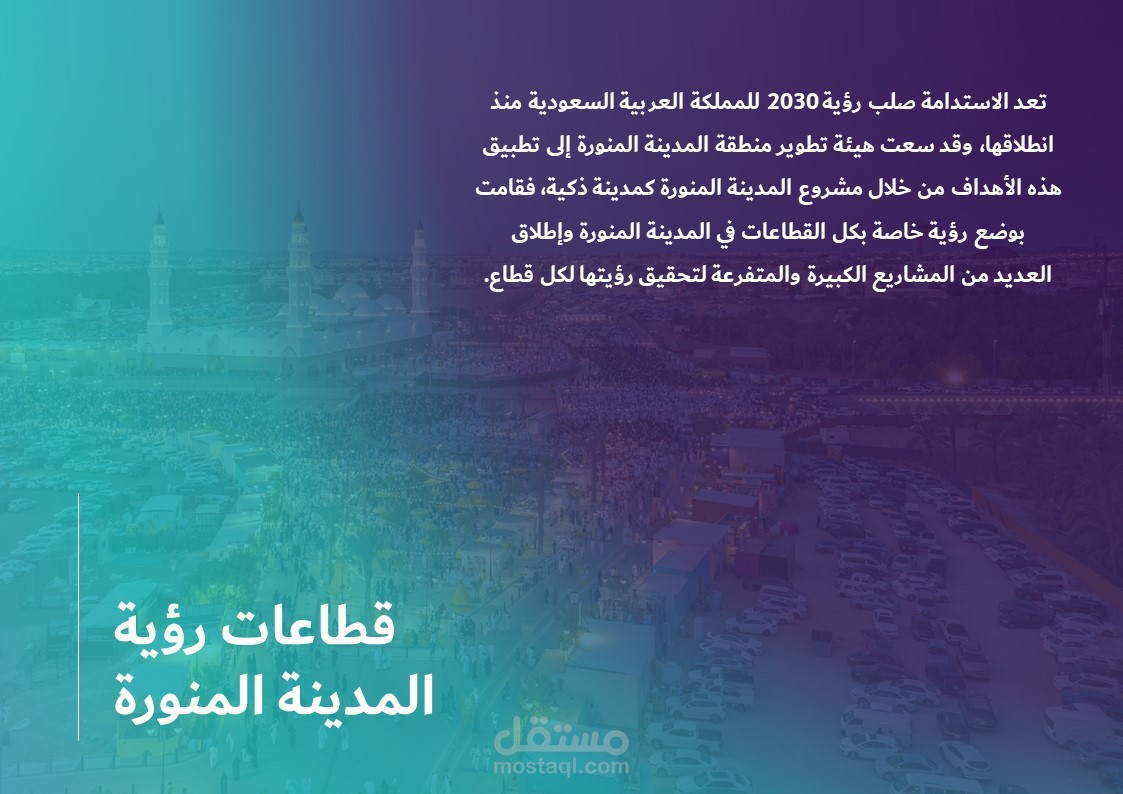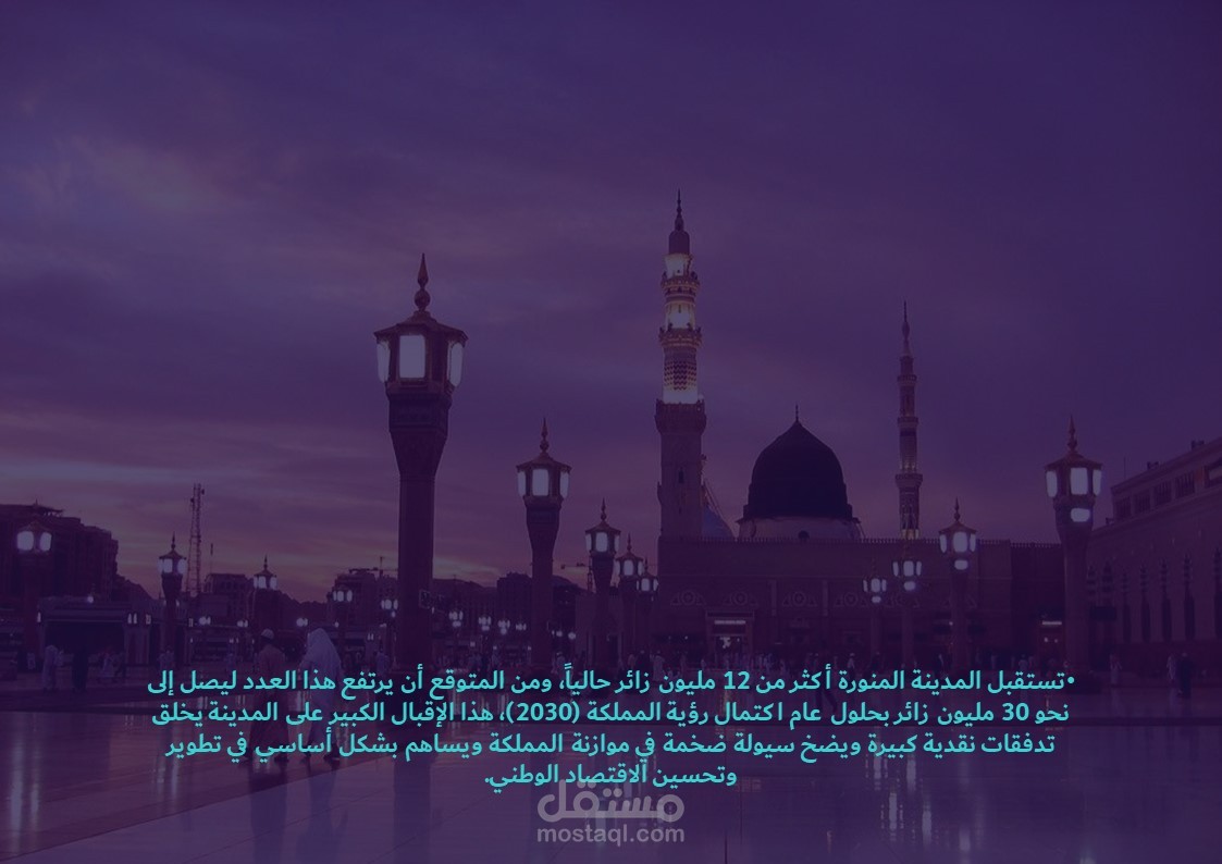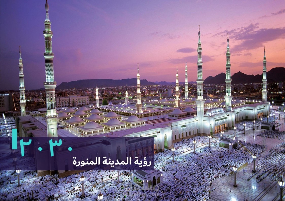 عرض تقديمي حول رؤية 2030 للمملكة العربية السعودية في المدينة المنورة.
